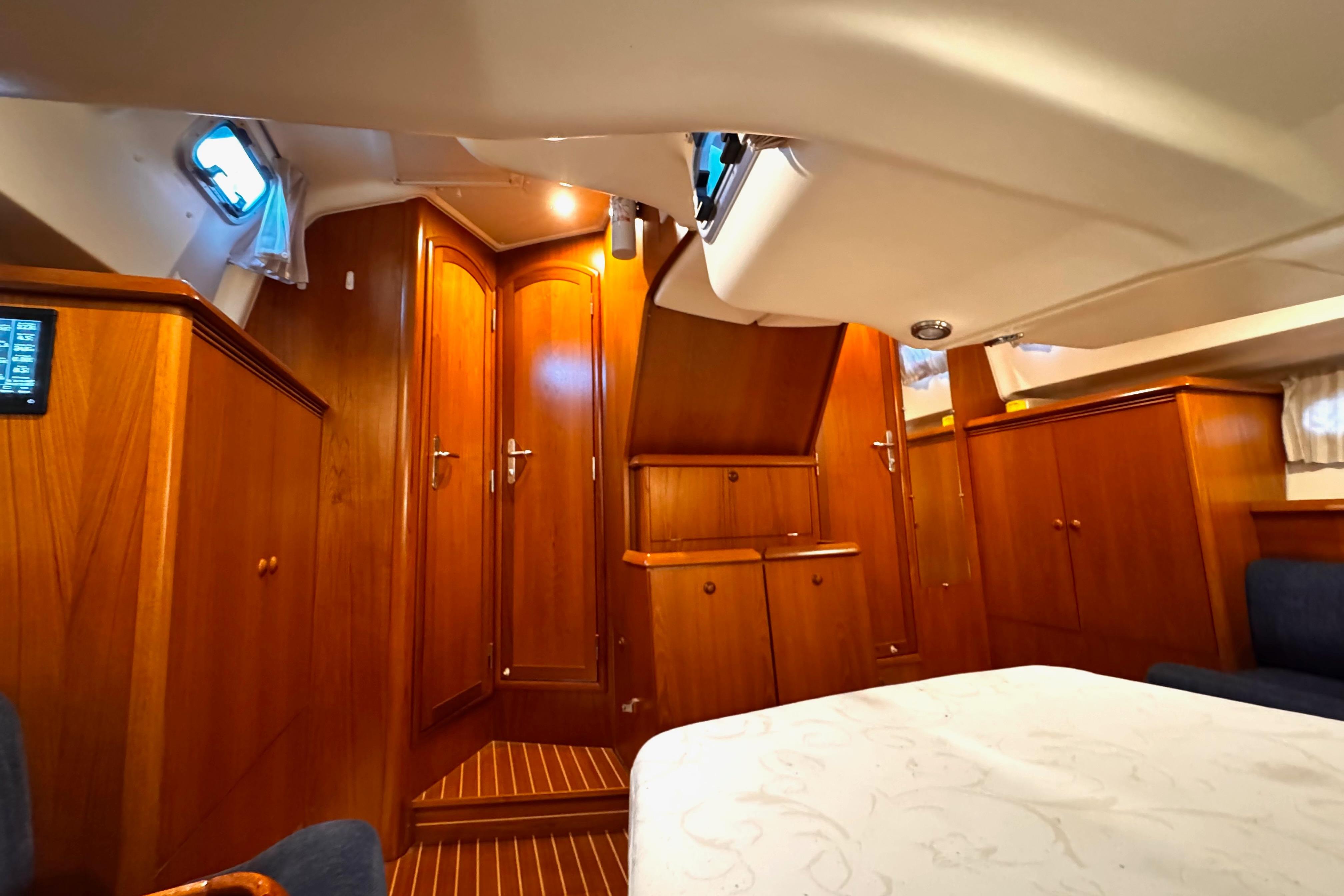 Designed by Philippe Briand and built by Jeanneau, the 43DS is a proven offshore cruiser, known for its solid performance and liveaboard-friendly features. The forward cabin is a rare configuration that makes this boat stand out — offering flexibility for kids, crew, or storage without sacrificing comfort.