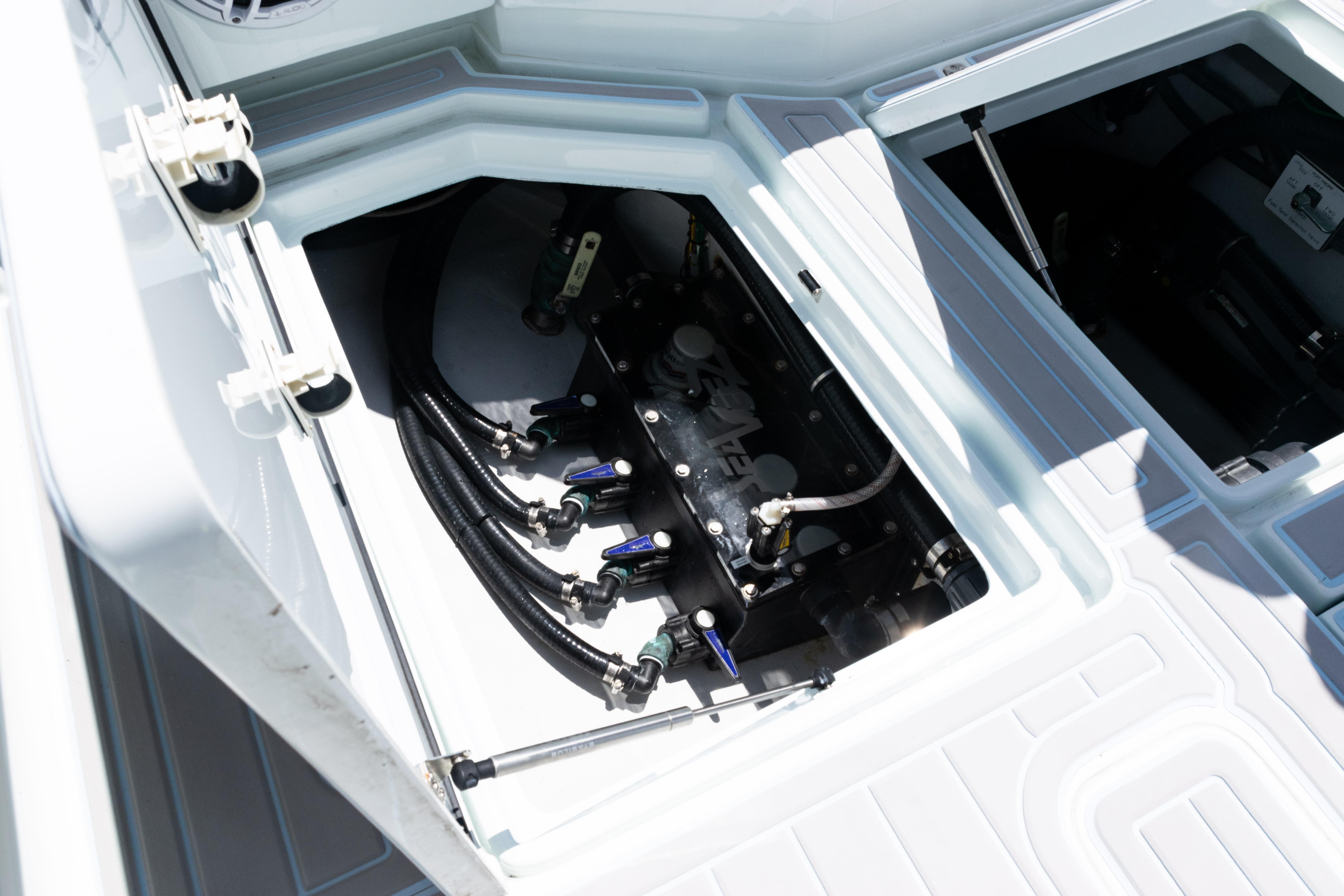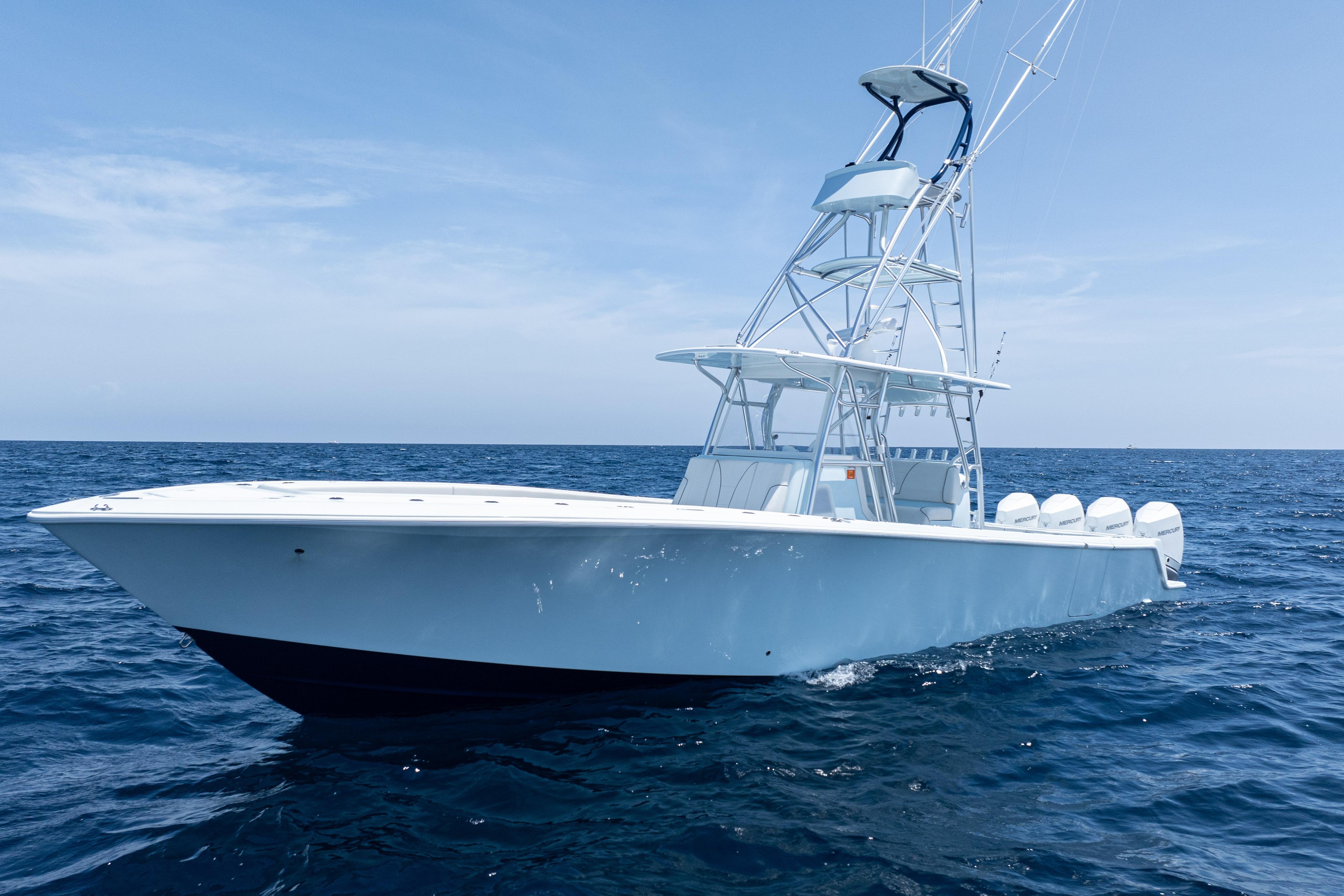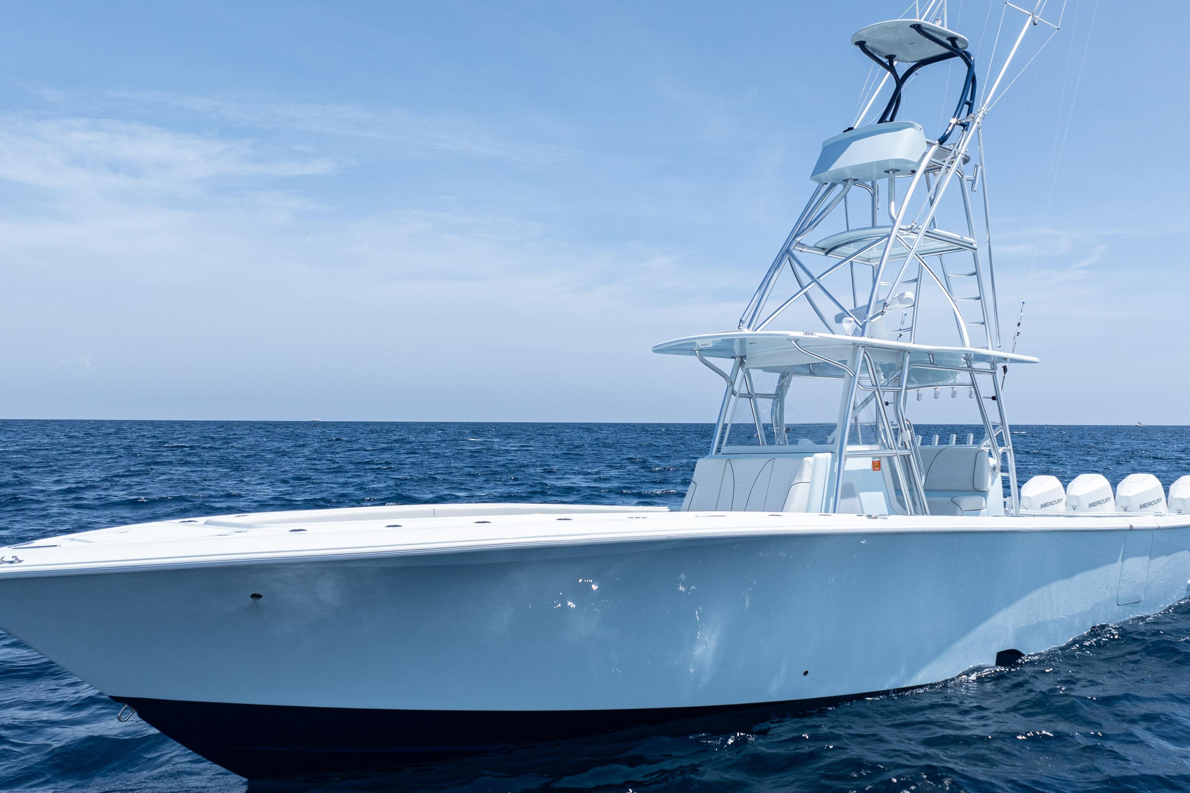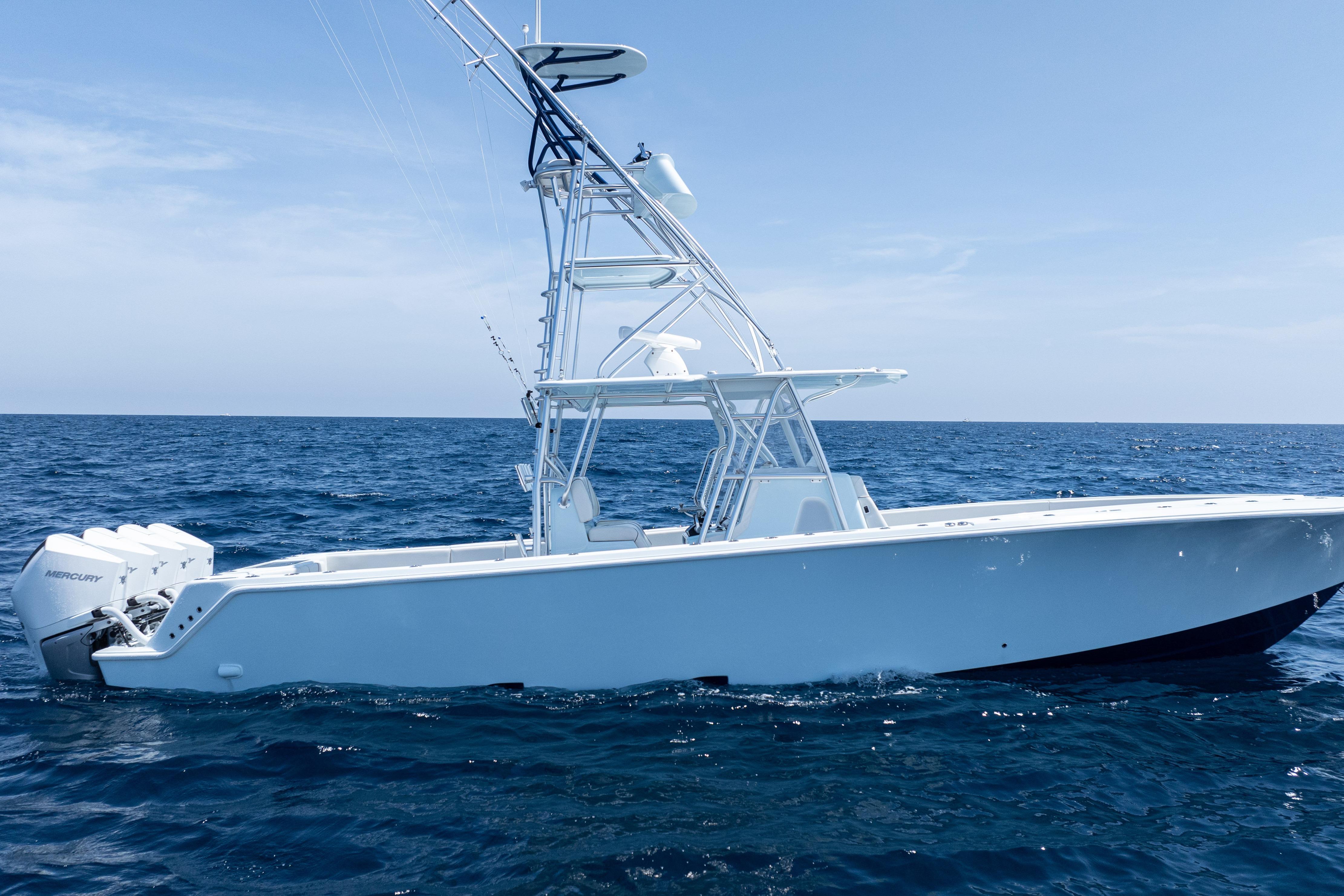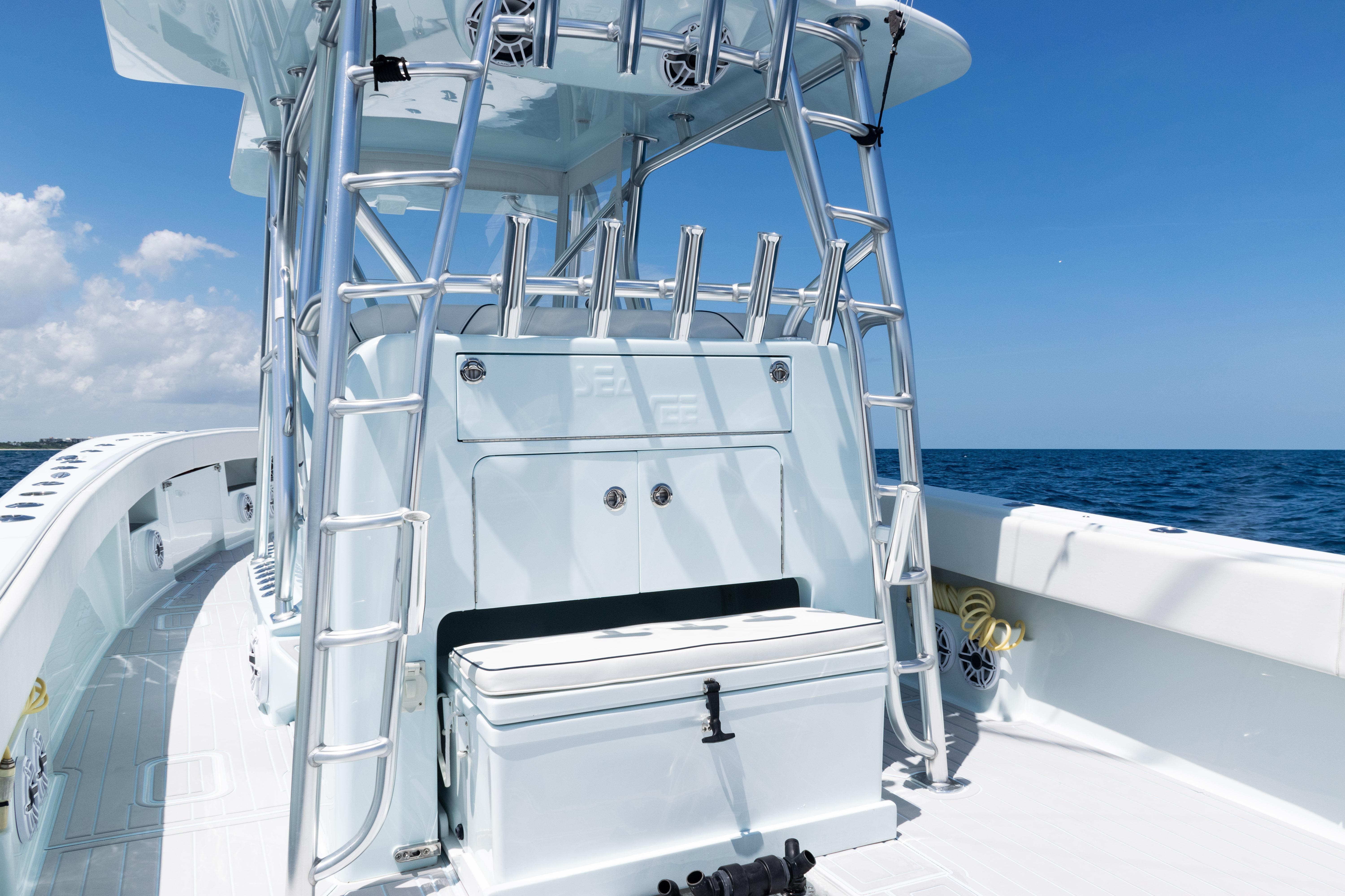 This 2023 SeaVee 390Z Open Fisherman is a tournament-ready, lift-kept center console powered by quad Mercury Verado 300 V8 AMS engines in Warm Fusion White. Loaded with premium Garmin electronics, JL Audio upgrades, and a custom tuna gap tower, this 390Z blends cutting-edge performance with luxury details for serious anglers and family cruising alike.