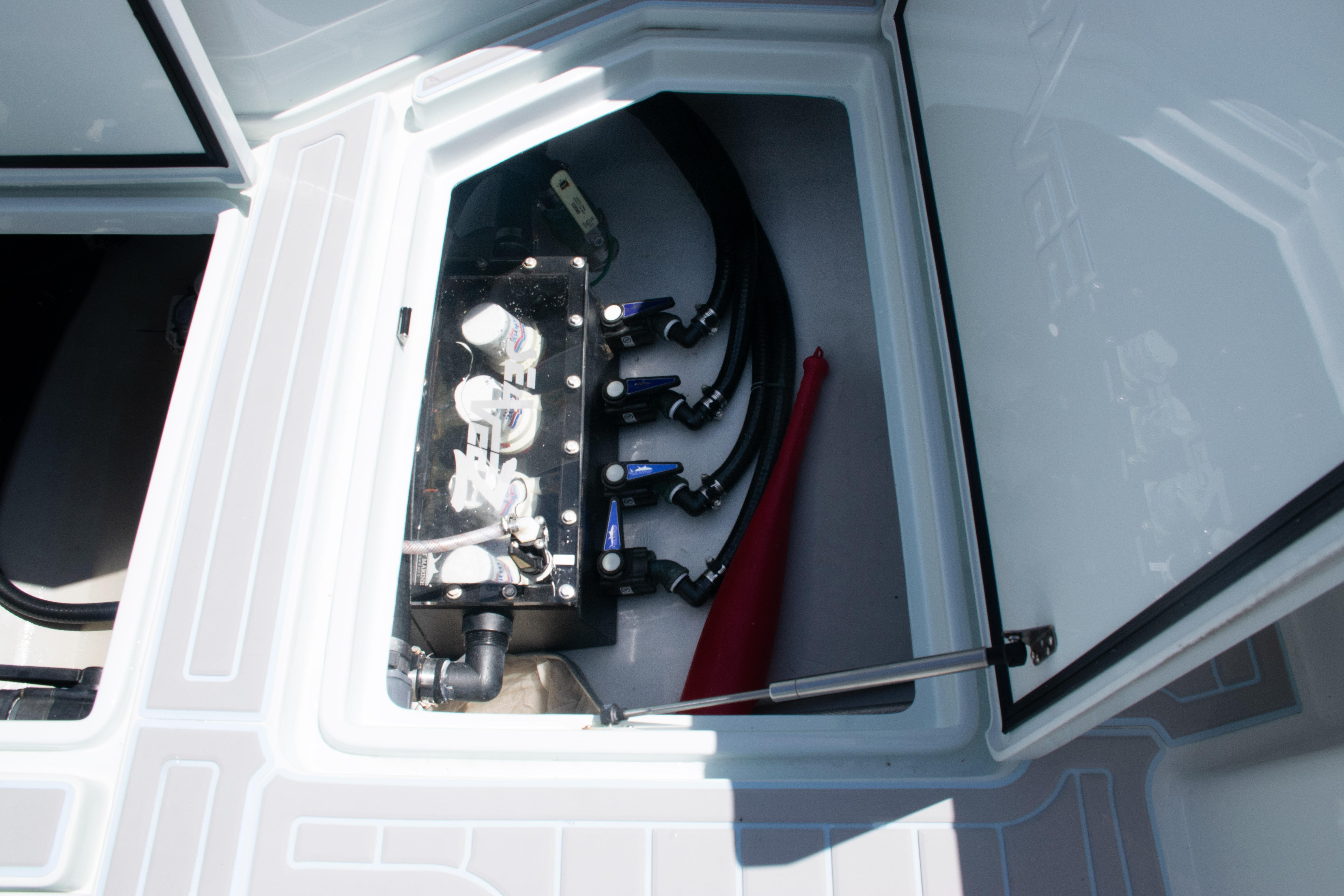 Custom stainless steel Sea Chest Baitwell System w/ four 1500 GPH pumps