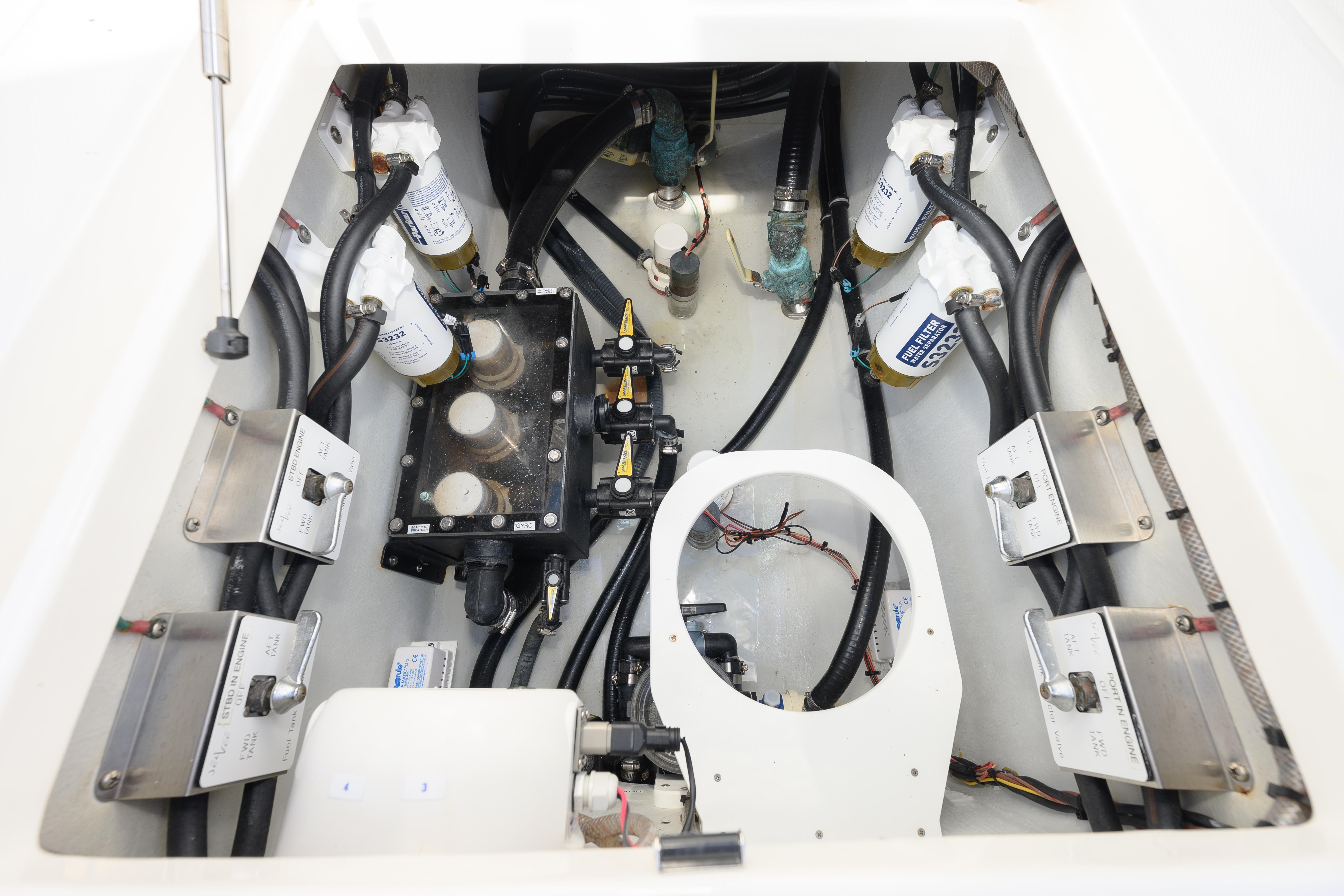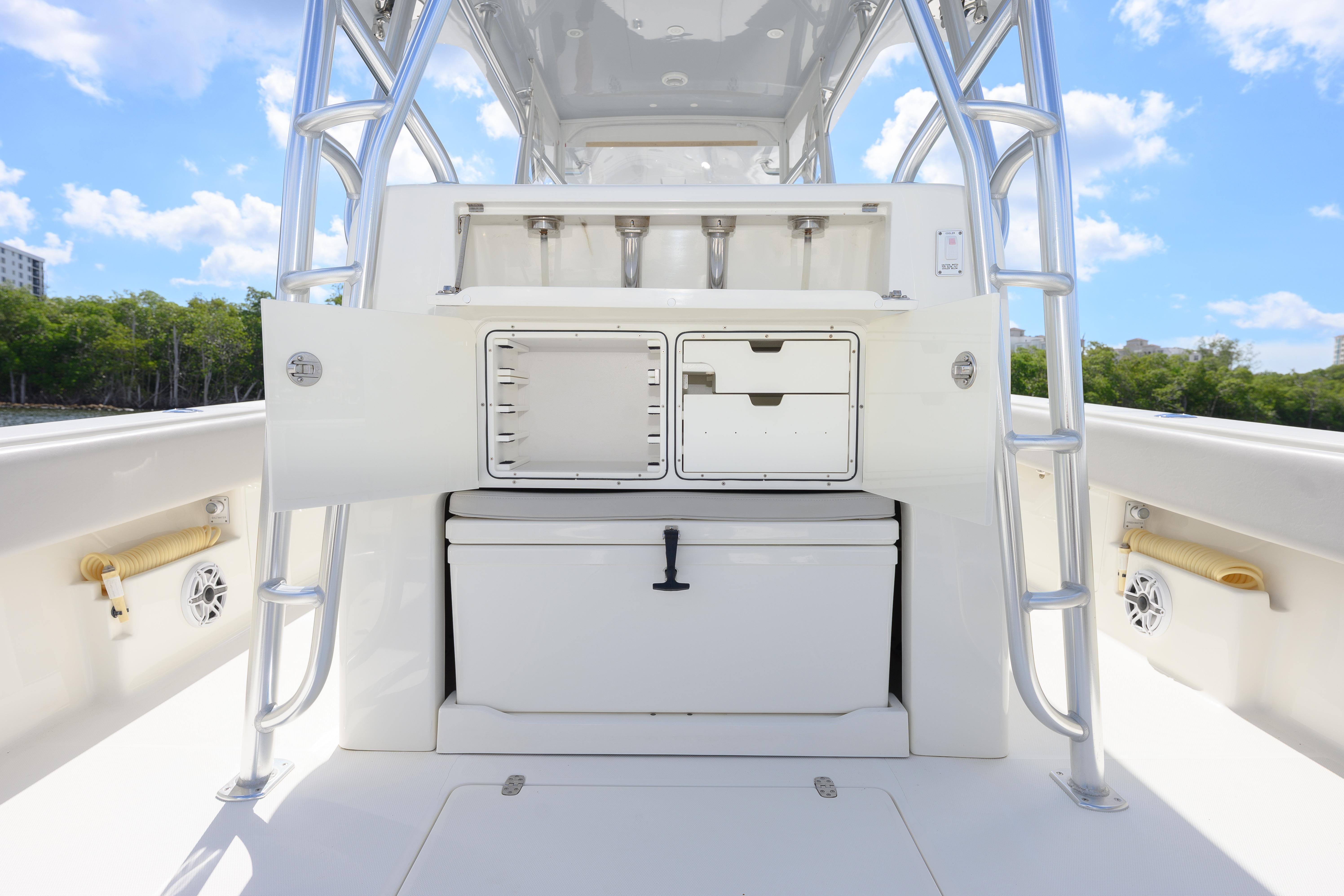 - Transom Large Livewell w/Aquarium Window & forward Floor Well w/3-Pump Seachest