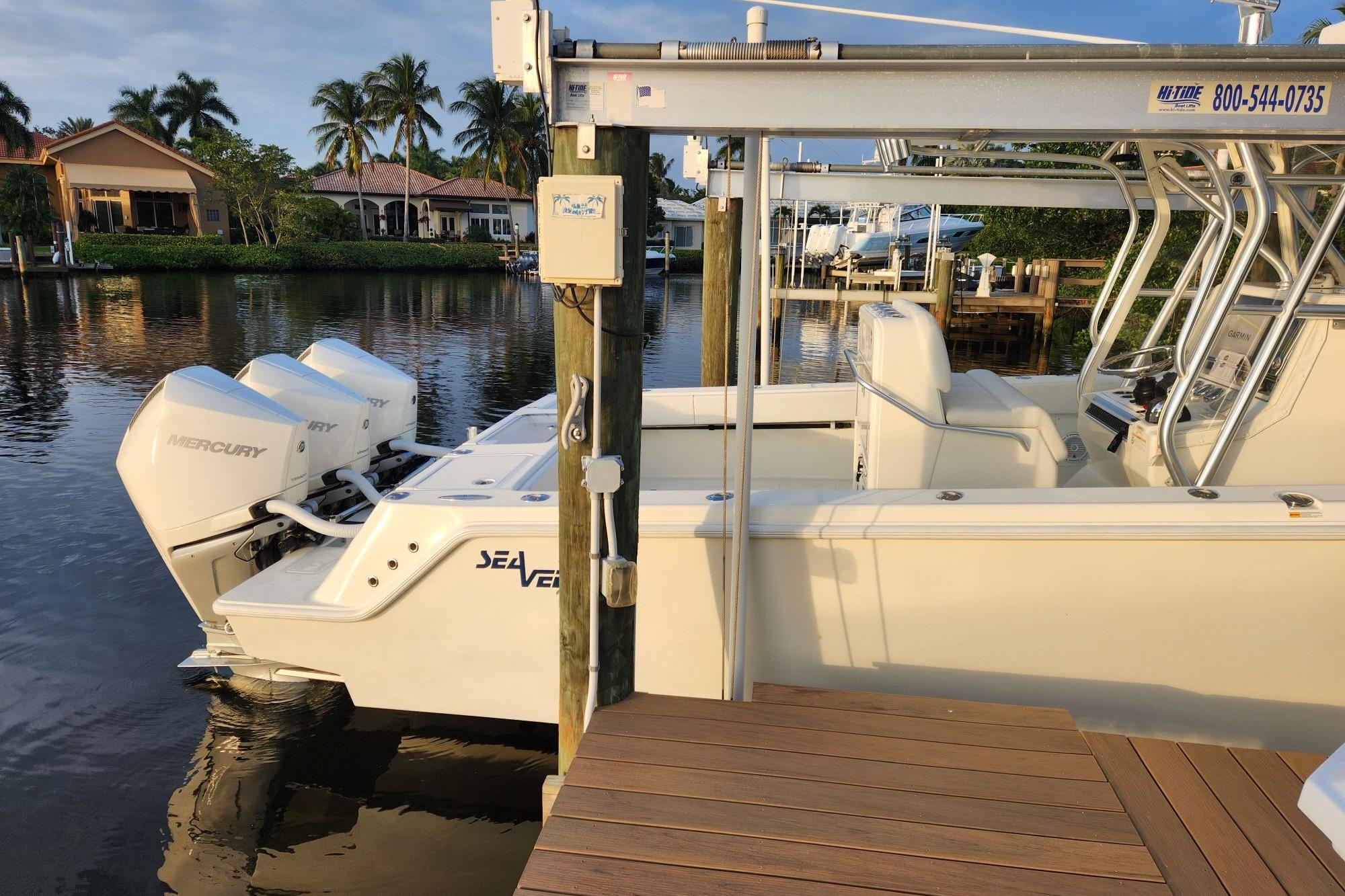 If you are in the market for a center console, then this 2017 34 SeaVeeZ should be at the top of your list. It is powered by new triple 300 Mercury Verados with around 90 hrs and warranty until 1/2029. She is extremely clean and has been kept on a lift since new. The seller just installed new (2) Garmin 8616s installed in May of 2023 and is ready to go.