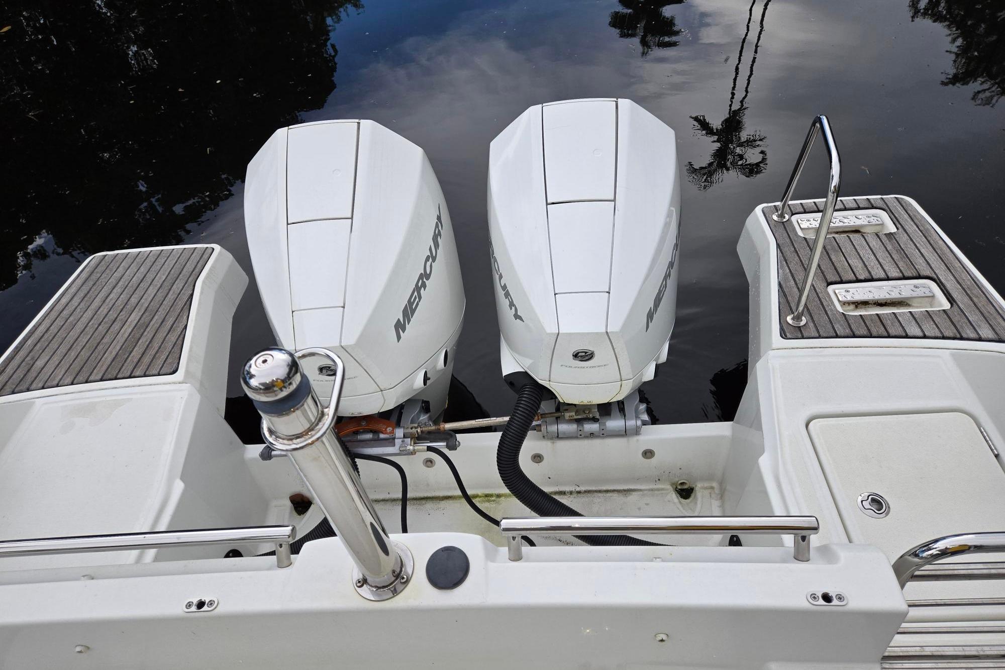 Introducing the stunning 2020 Jeanneau Leader 9.0 WA, a remarkable cruiser that combines elegance and performance. With an overall length of nearly 30 feet, this vessel is designed for both comfort and adventure on the water. The robust fiberglass hull ensures durability while providing a smooth ride. Powered by two Mercury 200XL DTS CF outboard engines, this boat delivers an impressive 400 horsepower, making it perfect for thrilling excursions. The 5-blade propellers enhance maneuverability, ensuring a responsive and enjoyable experience. Accommodating up to 10 guests, the Leader 9.0 WA features two cozy cabins and a well-appointed head, making it ideal for weekend getaways or day trips. Its thoughtful design caters to both relaxation and socializing, ensuring memorable moments on the water. Experience the perfect blend of style and functionality with this exceptional cruiser, ready to take you on your next maritime adventure. Bottom Paint.