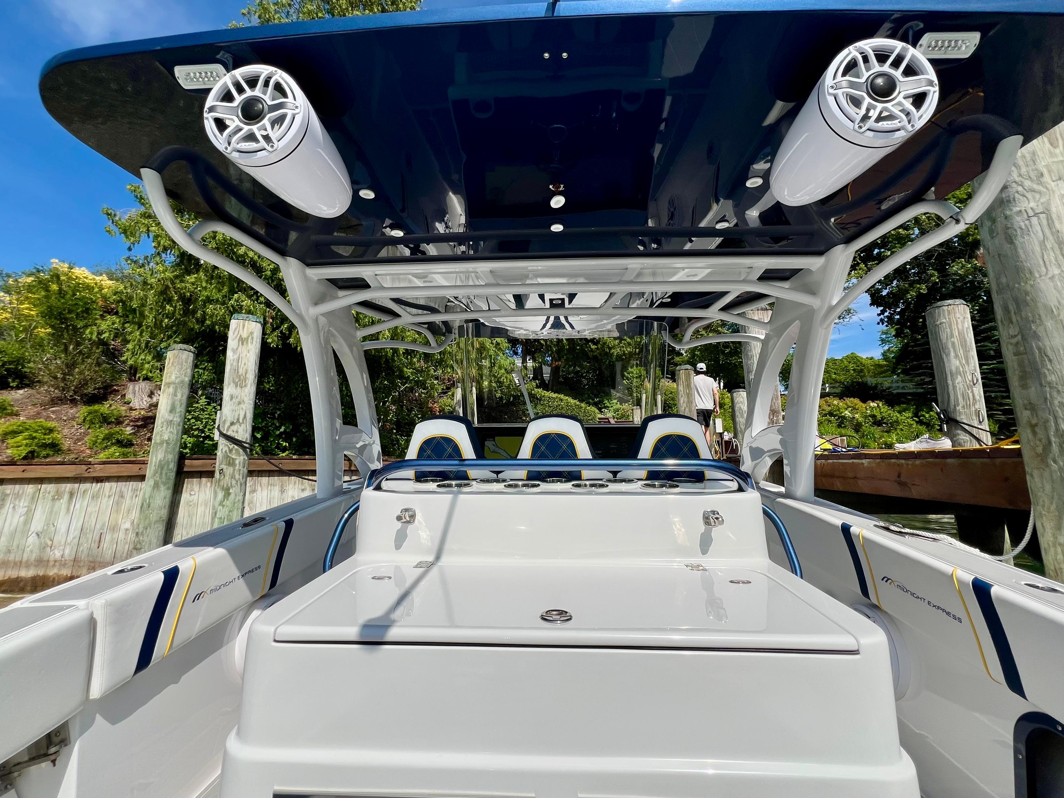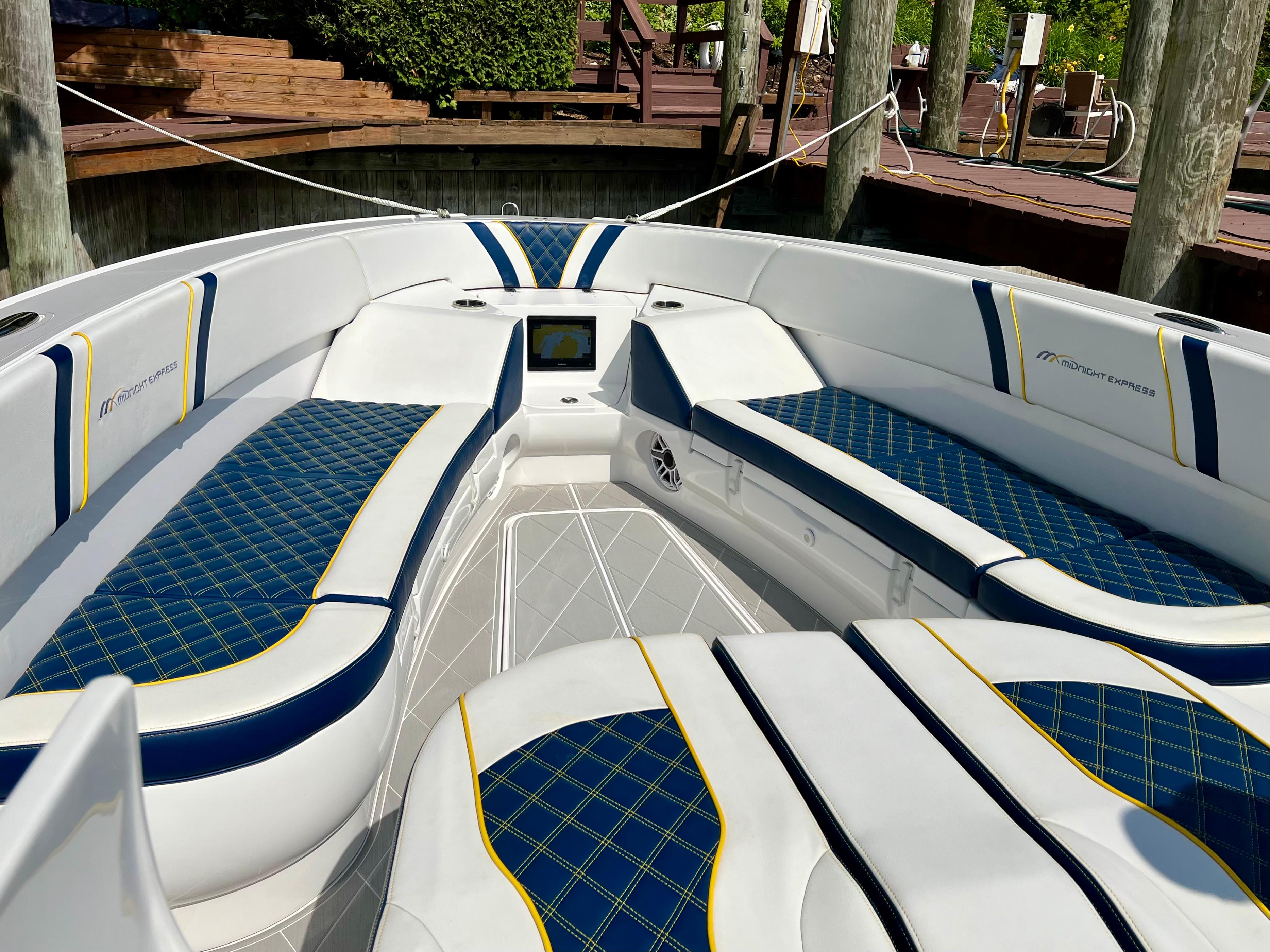 The Midnight Express 37' Open with its unbelievable 11'6" beam and fully infused construction is the ultimate do-it-all boat. Whether your looking to fish, cruise, restaurant hop, have a sandbar session or a cross-ocean adventure... the 37' Open allows you to have the best of all worlds. This Midnight Express 37' Open offers a range of performance, luxury, seating, and electronic options.