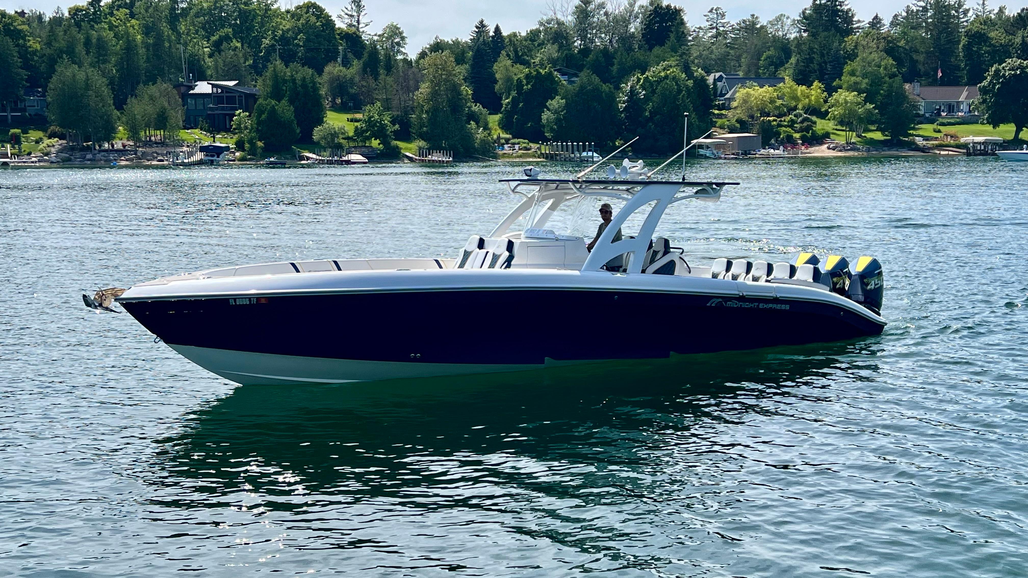 This 37 Midnight Express is in great overall condition. Some key features include triple 450R Mercury Outboard Motors (with only 175 hours), Mercury Vessel View Display, Garmin Electronics, Fusion/JL Audio Sound System, Seakeeper 3, Bow Thruster, Isotherm refrigerator with freezer plates, Battery Chargers, Underwater Lights, Live Wells, Full Cover and more.