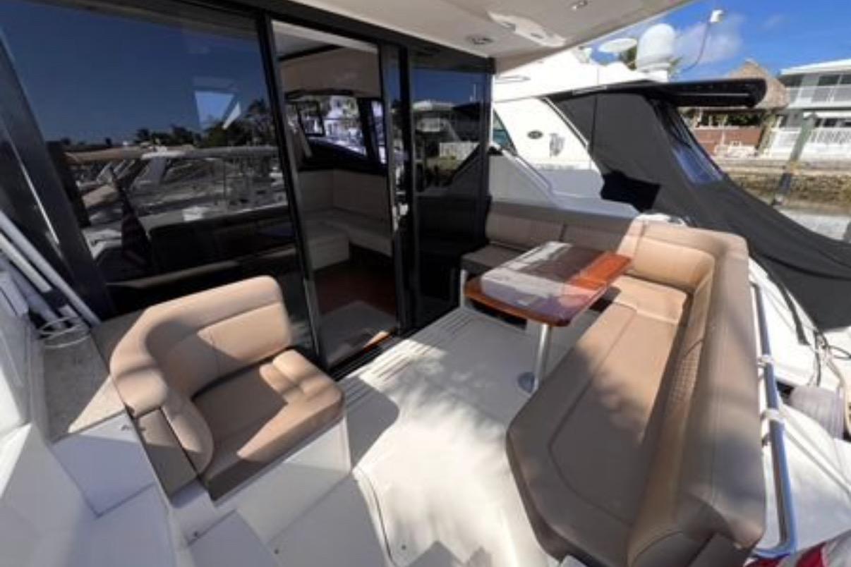 This Sea Ray 400 Sundancer is designed for both entertaining and extended cruising, blending style, luxury, and performance.
