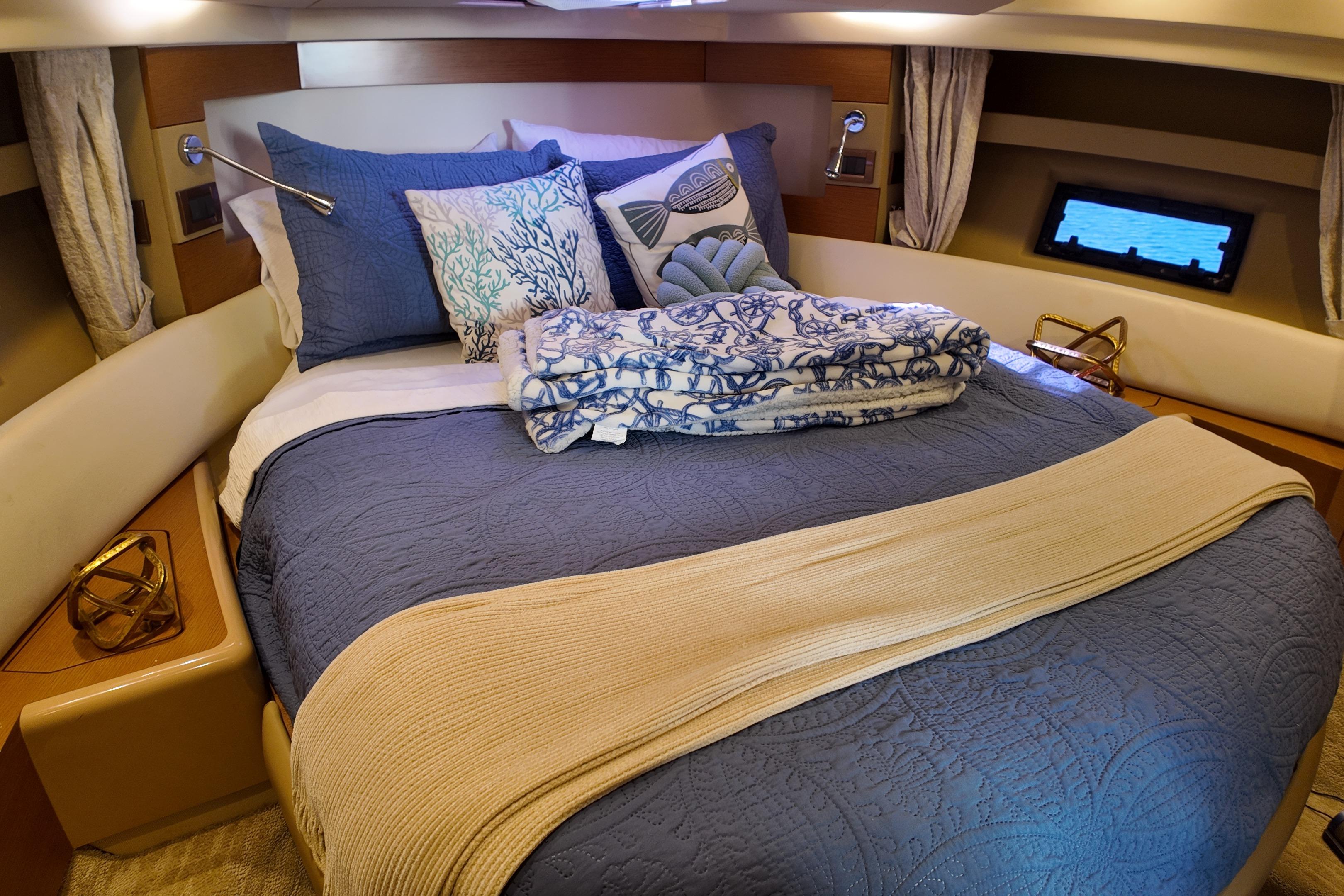 • Master Stateroom (Forward): Island queen berth, private head, and stall shower