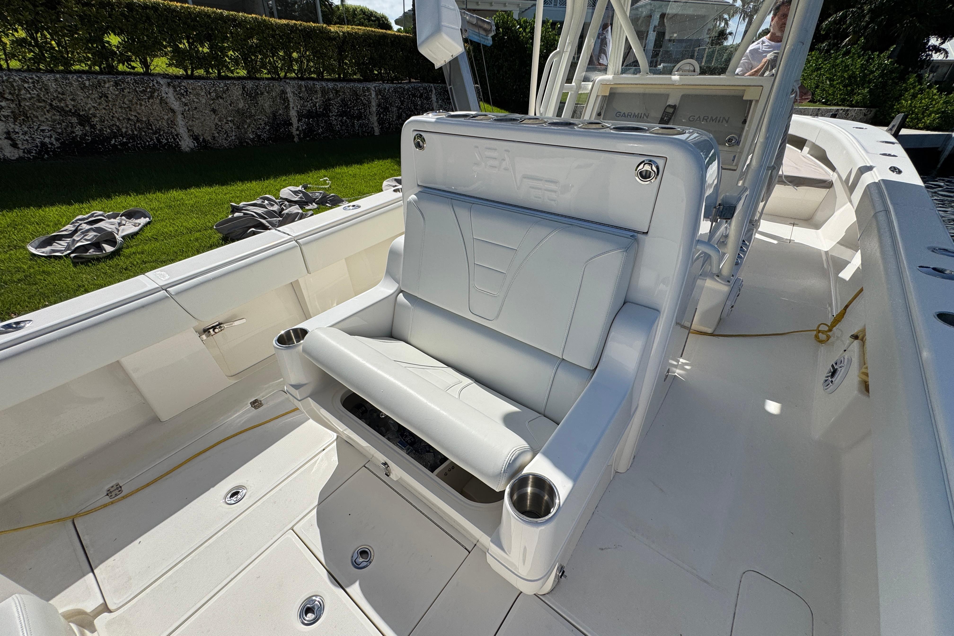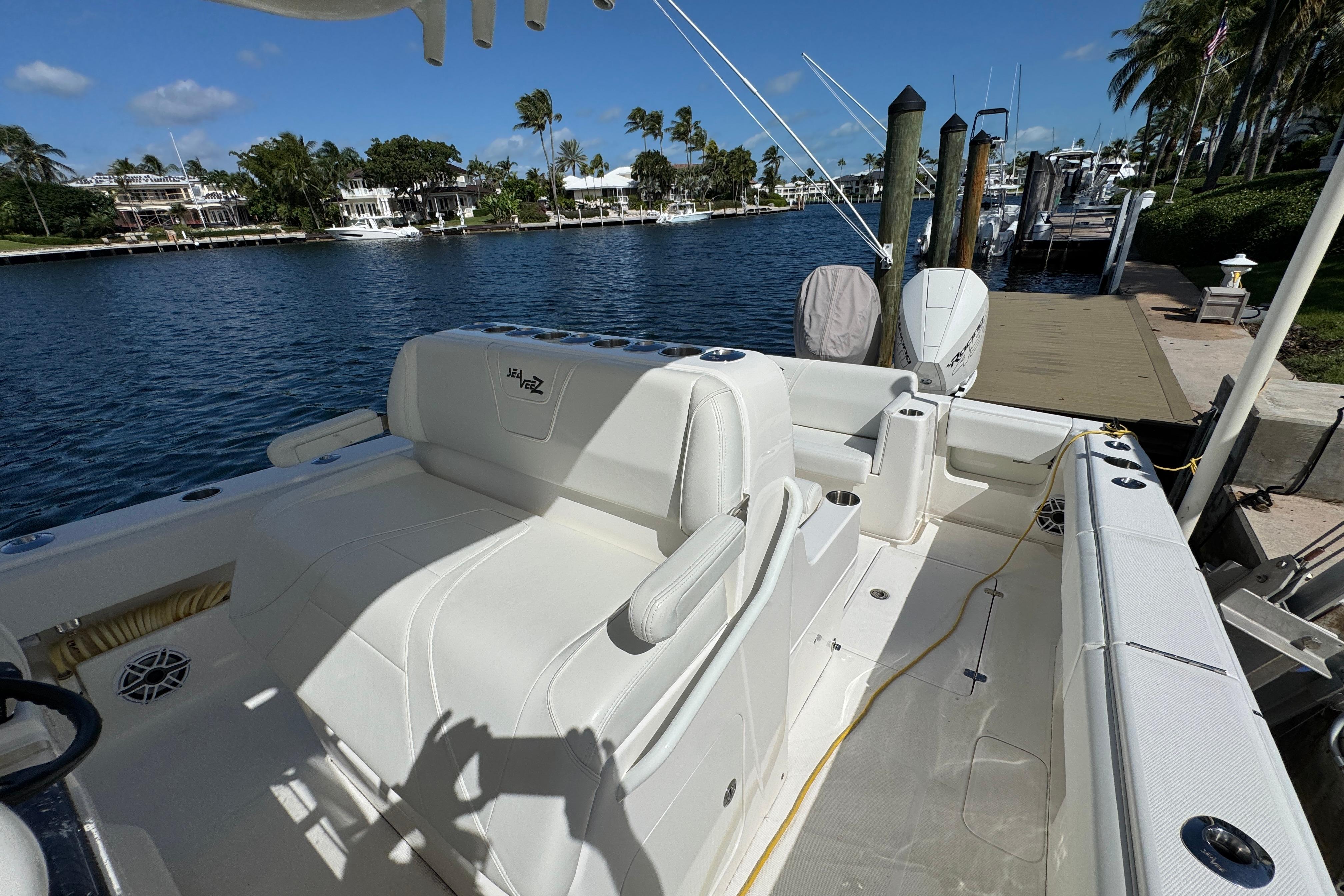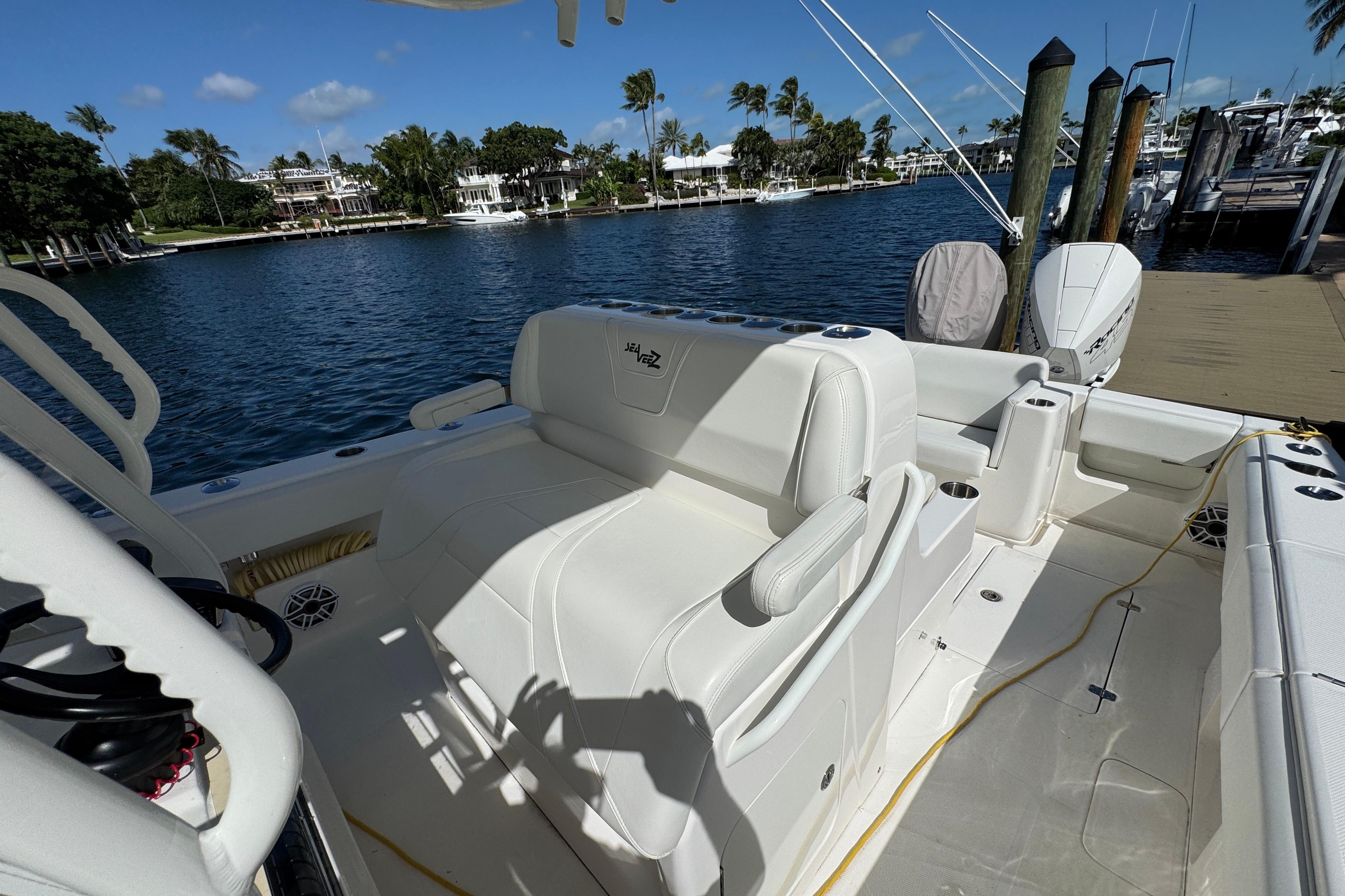 Put simply, the SeaVee 340z is a dream machine! Powered by Twin Mercury 450r's this 340z screams performance. Thanks to SeaVee’s award winning twin stepped hull the 340z boasts superior speed, handling, ride quality and fuel efficiency. Add to that plenty of deck space for the whole crew and almost limitless storage capacity. It’s obvious why this is the ideal boat for long weekends on the water.