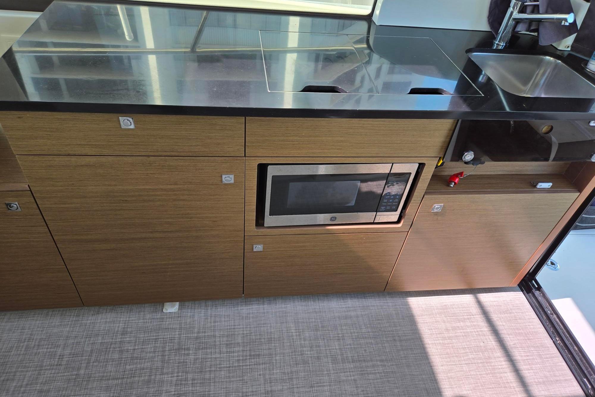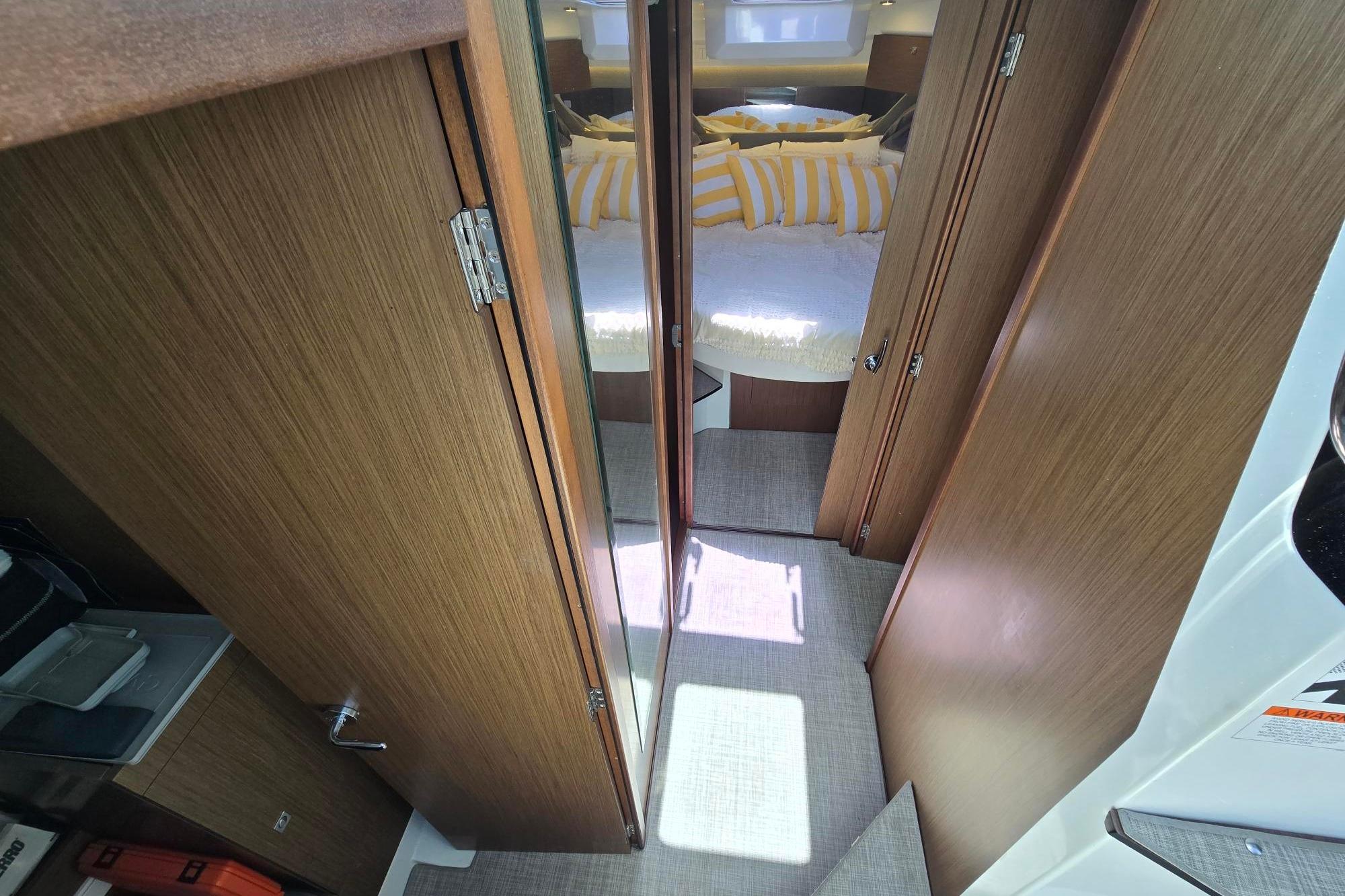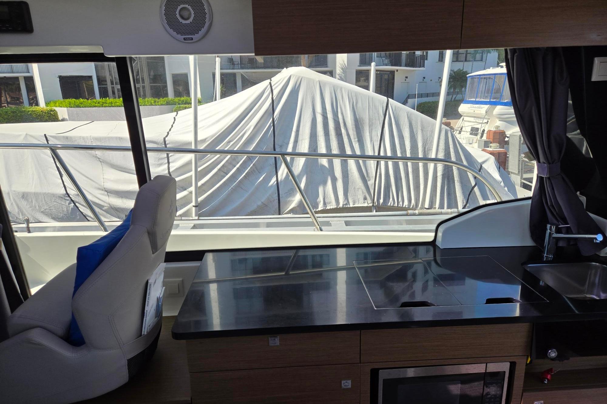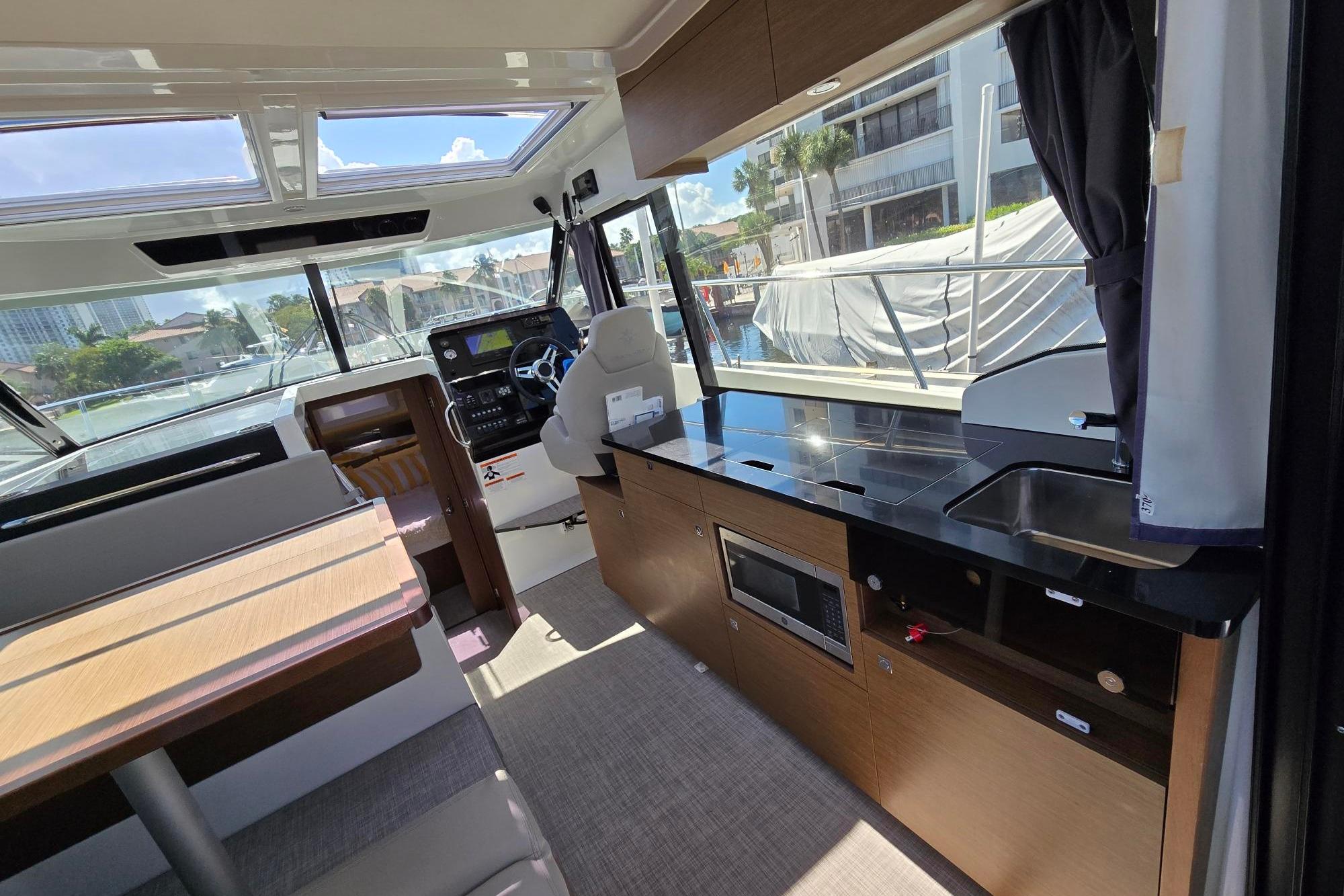 The interior of the NC 1095 with its opening sunroofs and large windows in the hull, allow for plenty of natural lighting. The galley is large and fully functional: here again, a surprising amount of storage space is available in both upper and lower cabinets, allowing you to store everything for your time on the water.