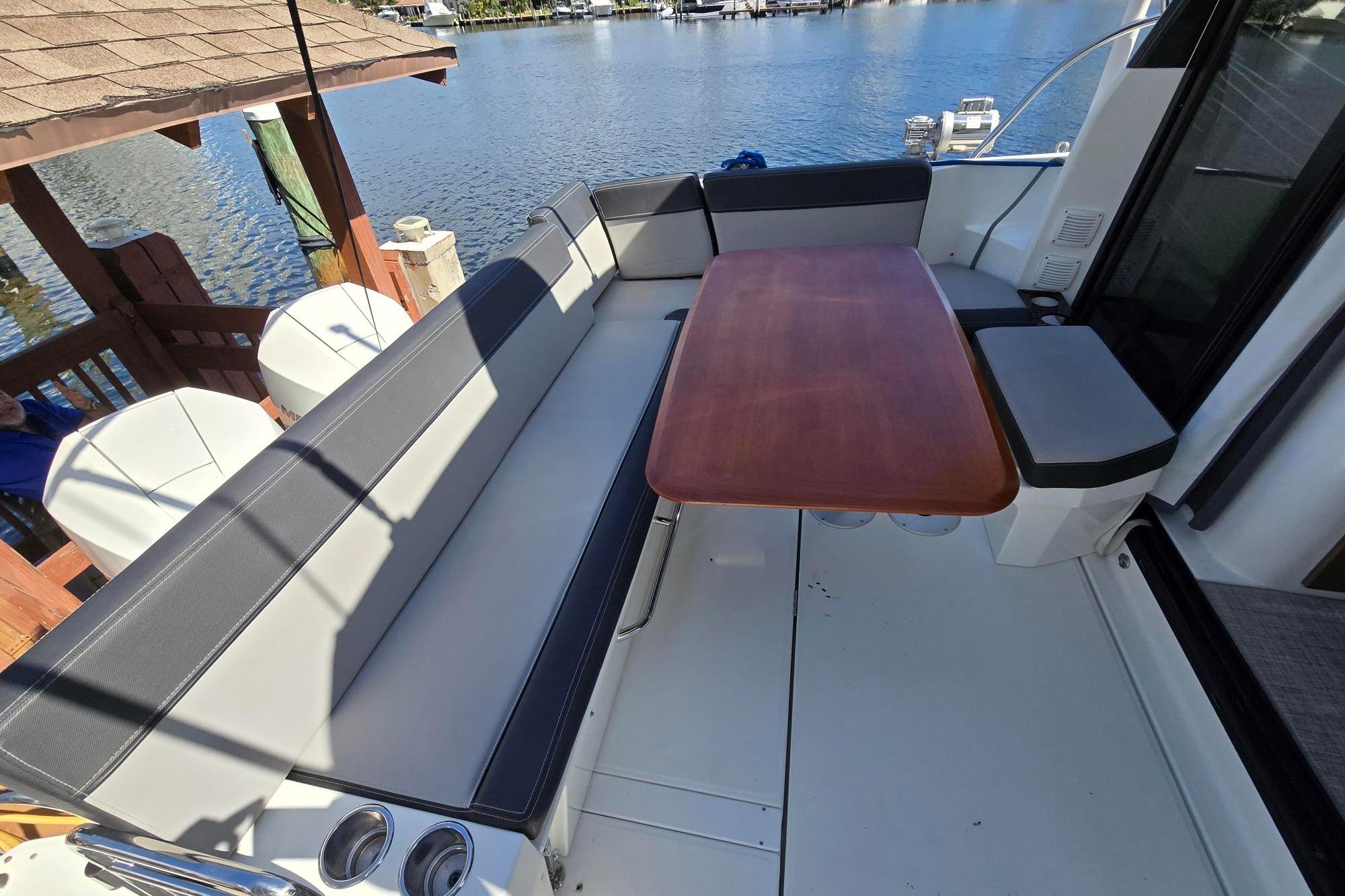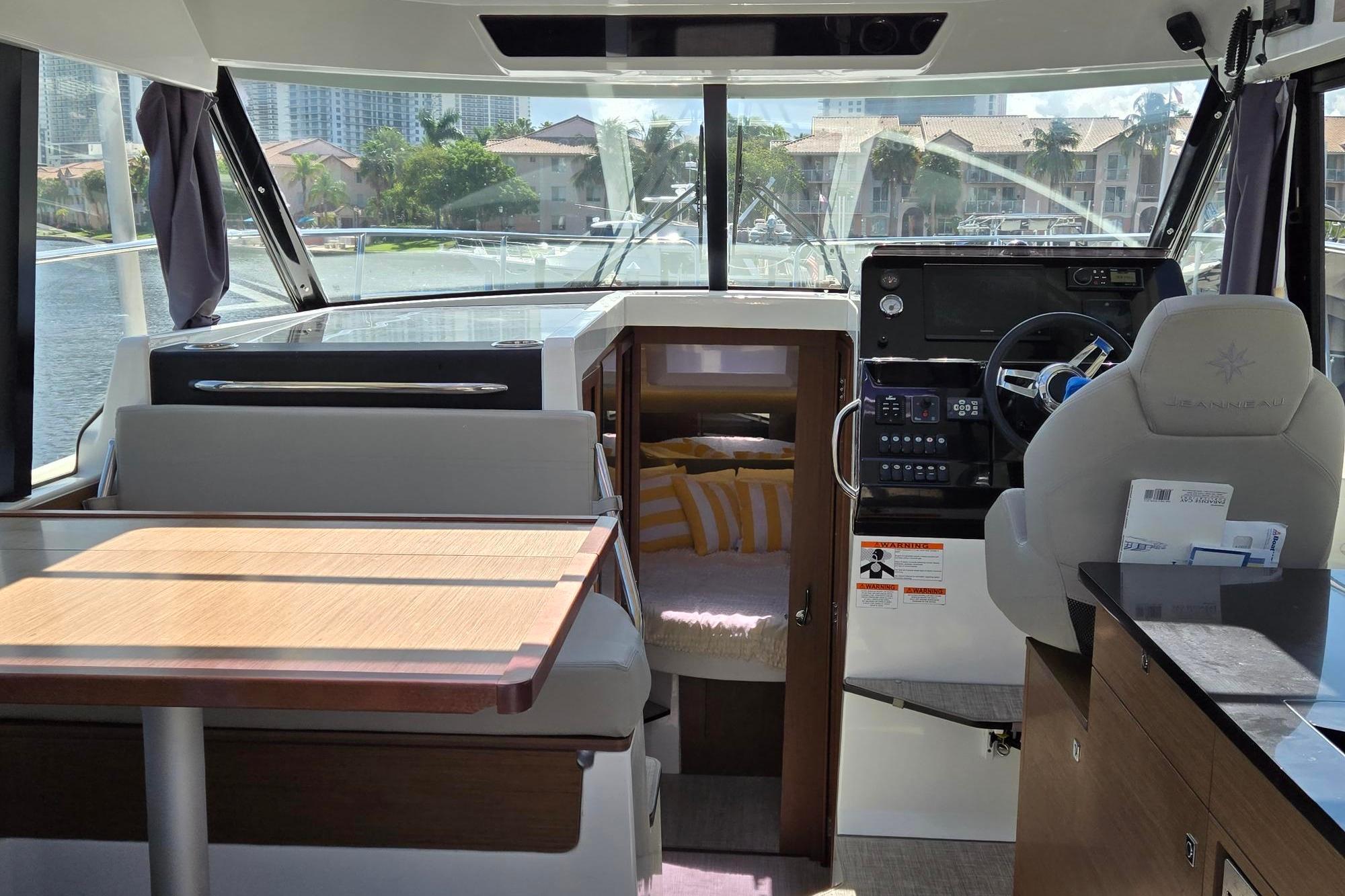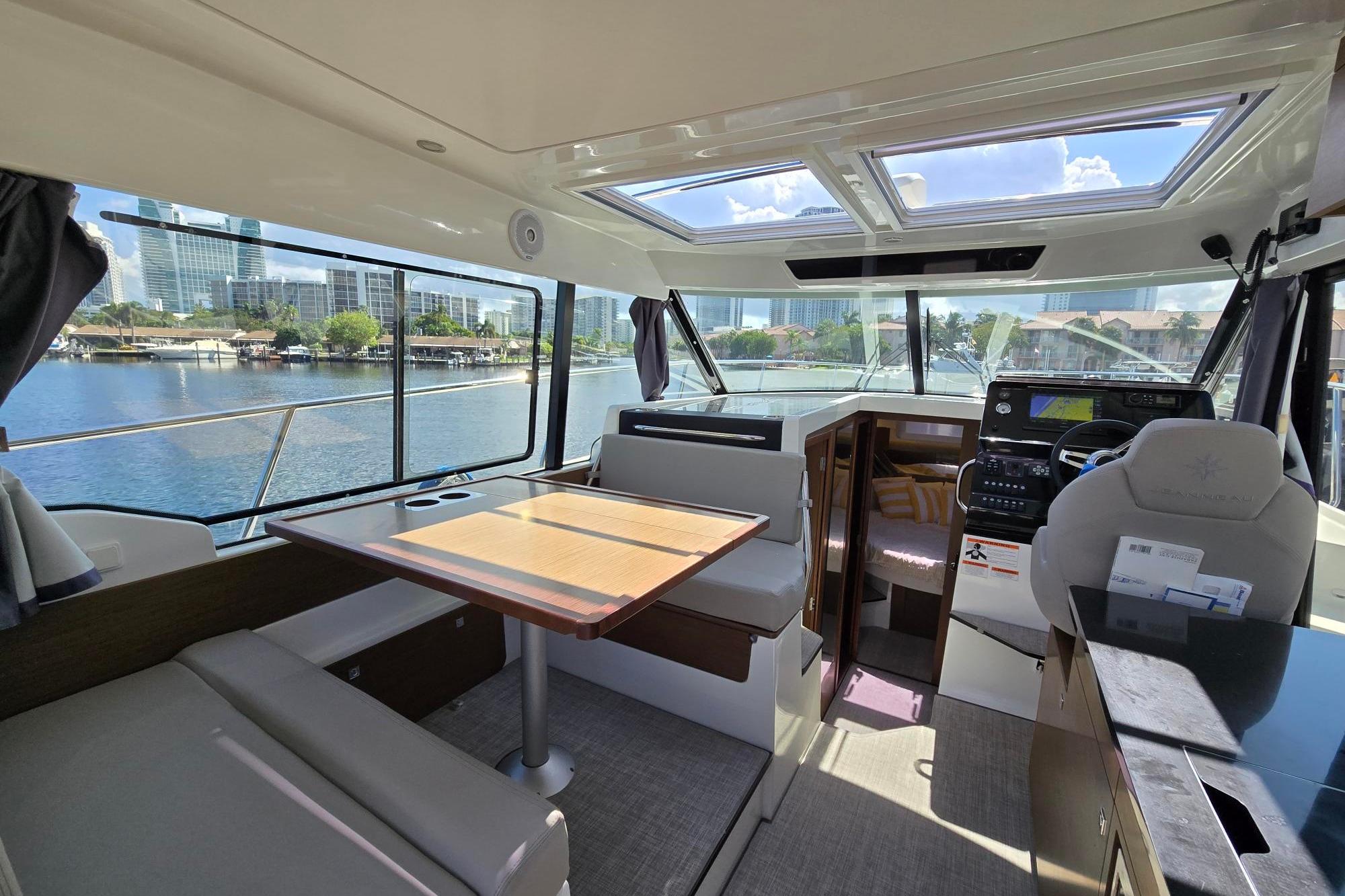 Like all Jeanneaus, the NC 1095 has been designed for life underway and include some clever features like recessed side-decks allowing for safe movement about the boat with easy access to the helm. A large L-shaped lounge comfortably fits a large group and easily converts into a large lounging area. Large transom platforms on either side of the outboard engines, make boarding safe and easy.