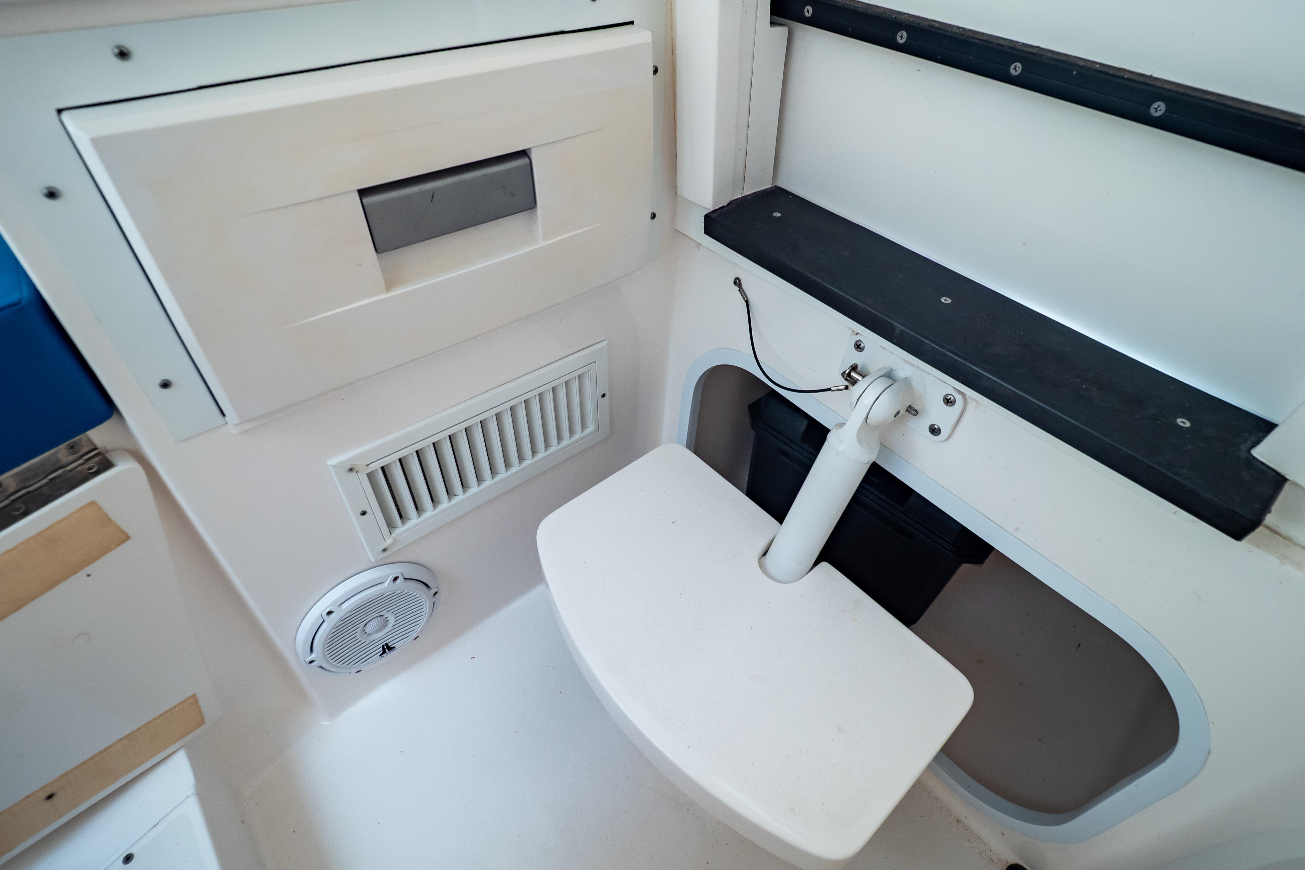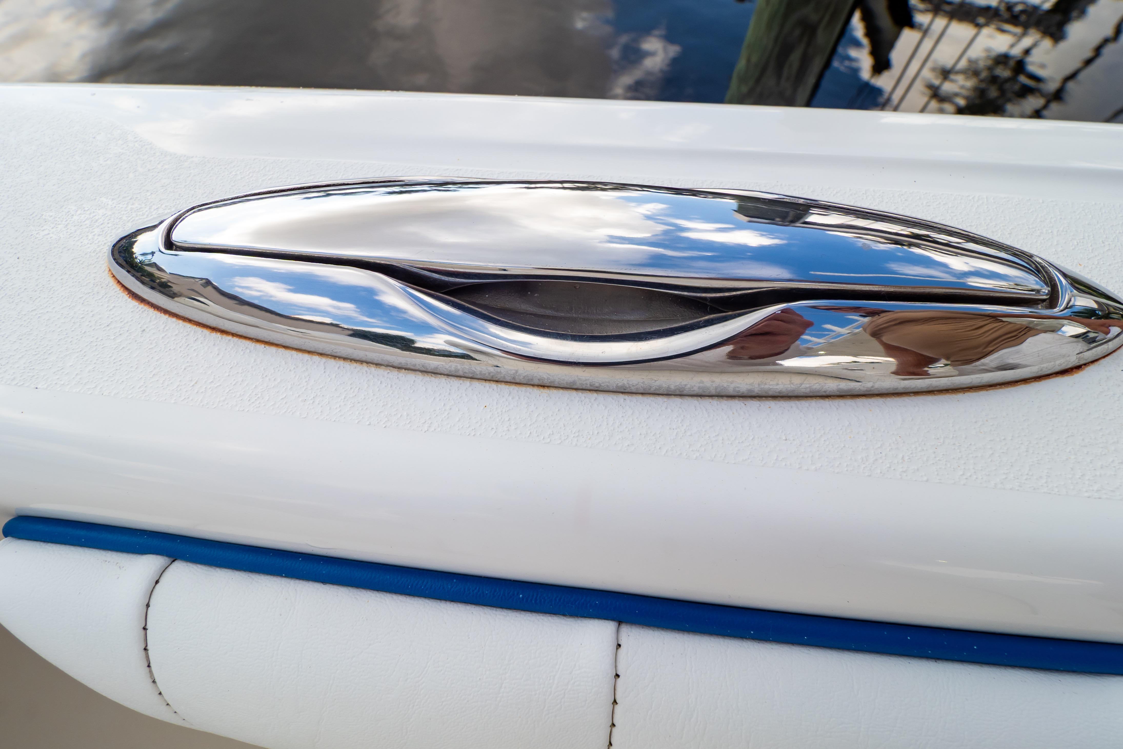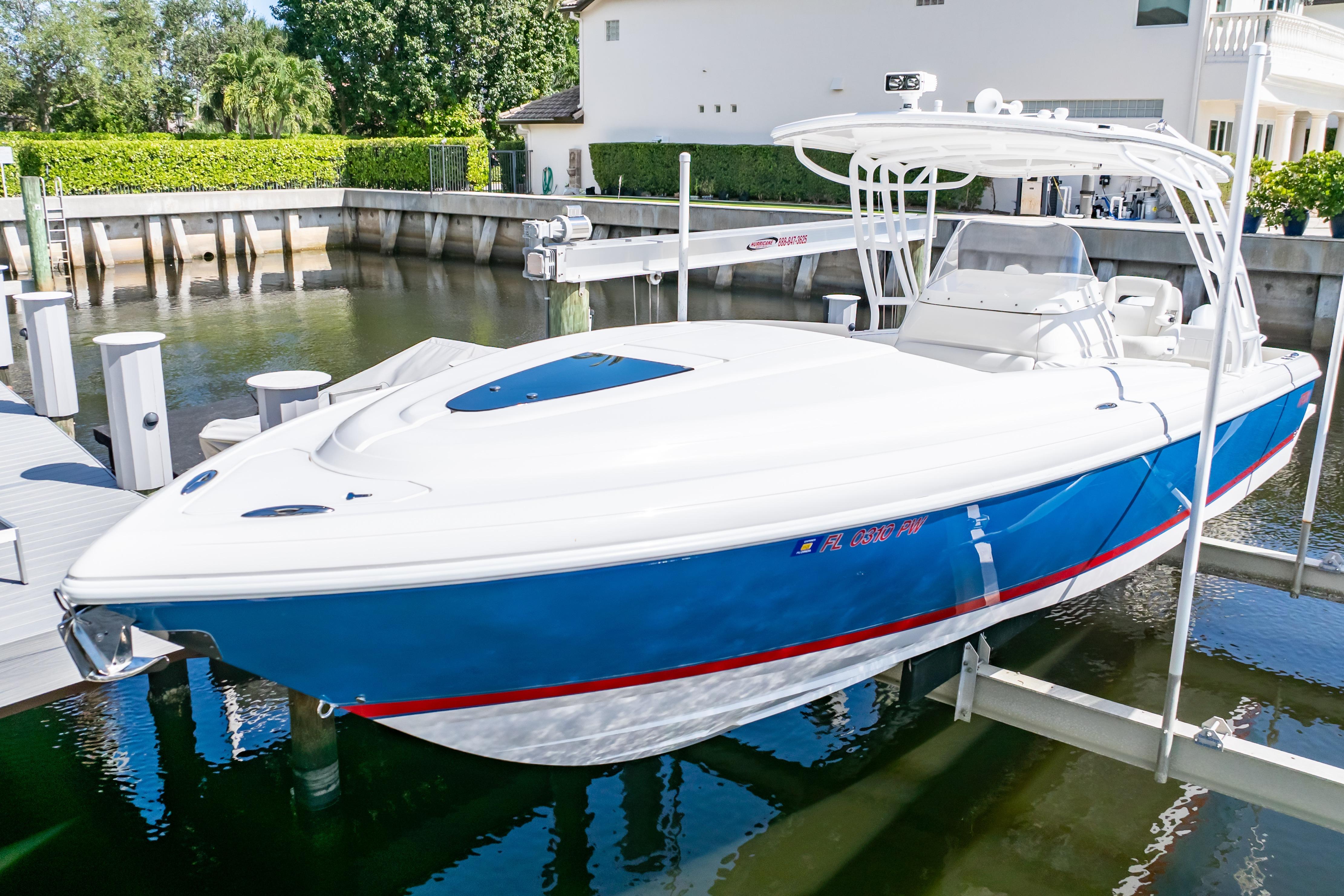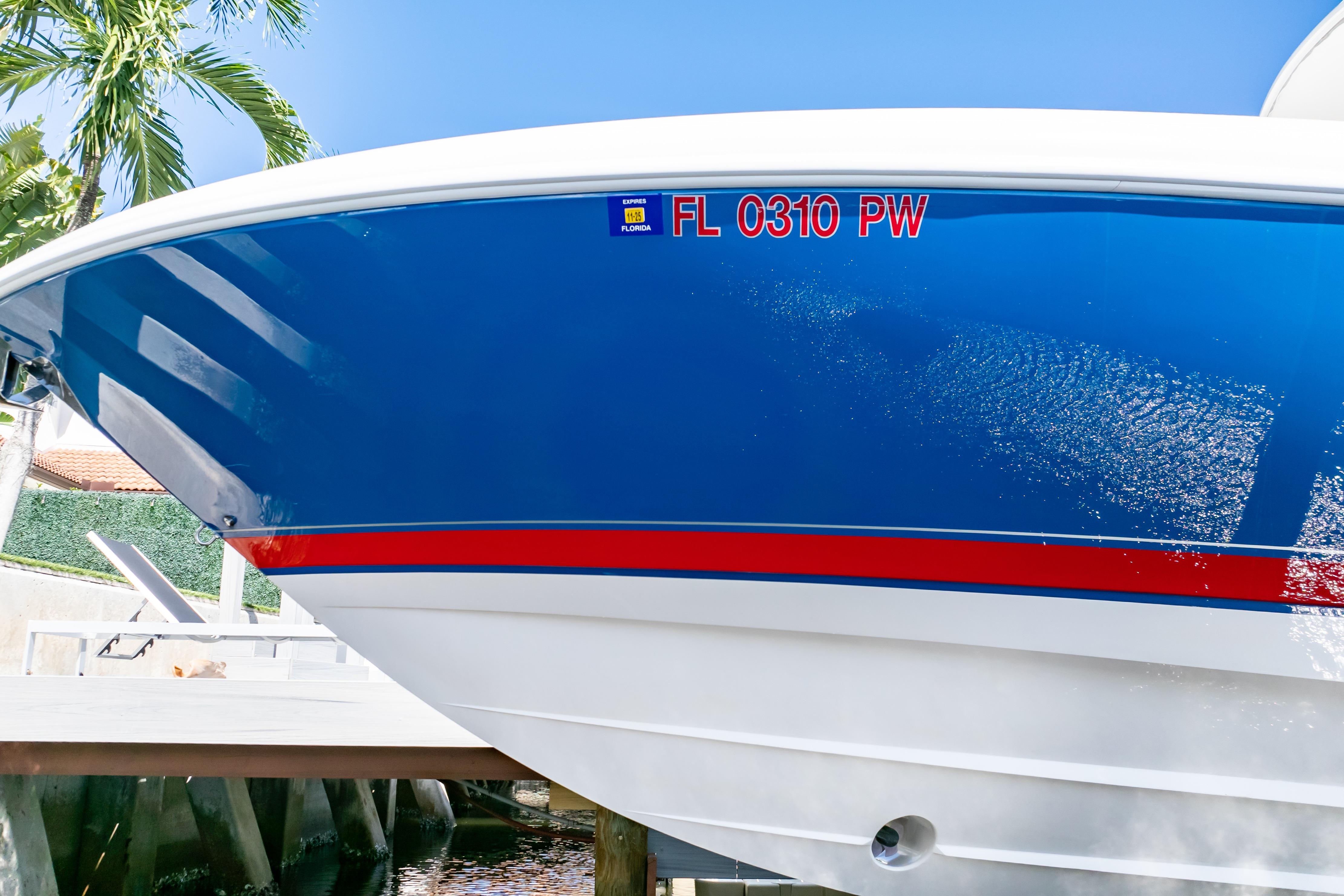 Building on the breakthrough hull platform recently introduced on our revolutionary 327 Center Console, this cuddy tops it off with an array of innovative design features that includes luxurious new seating arrangements and an ingeniously redesigned interior. The dual vented aft keel, elevated freeboard, wider chines and increased running surface are designed to support a heavier twin power package while maintaining fuel efficiency. The sleek, head-turning sheer line mirrors the contemporary hull design. The spacious new cabin design includes customer friendly innovations, like integrated overhead storage units on both the port and starboard sides that stow gear and eliminate clutter, additional cabinetry and space for endless customizations, like an optional refrigerator. The forward v-berth features new fold-away settee cushions that convert it from a roomy wraparound lounge to luxurious overnight accommodations.