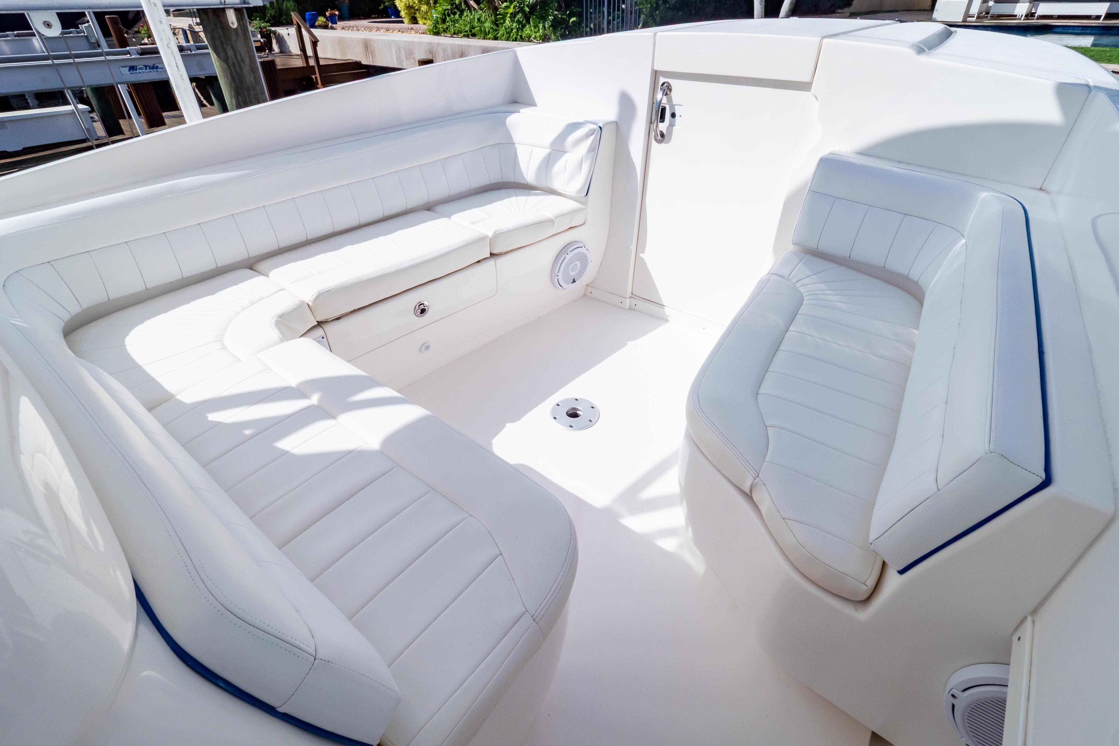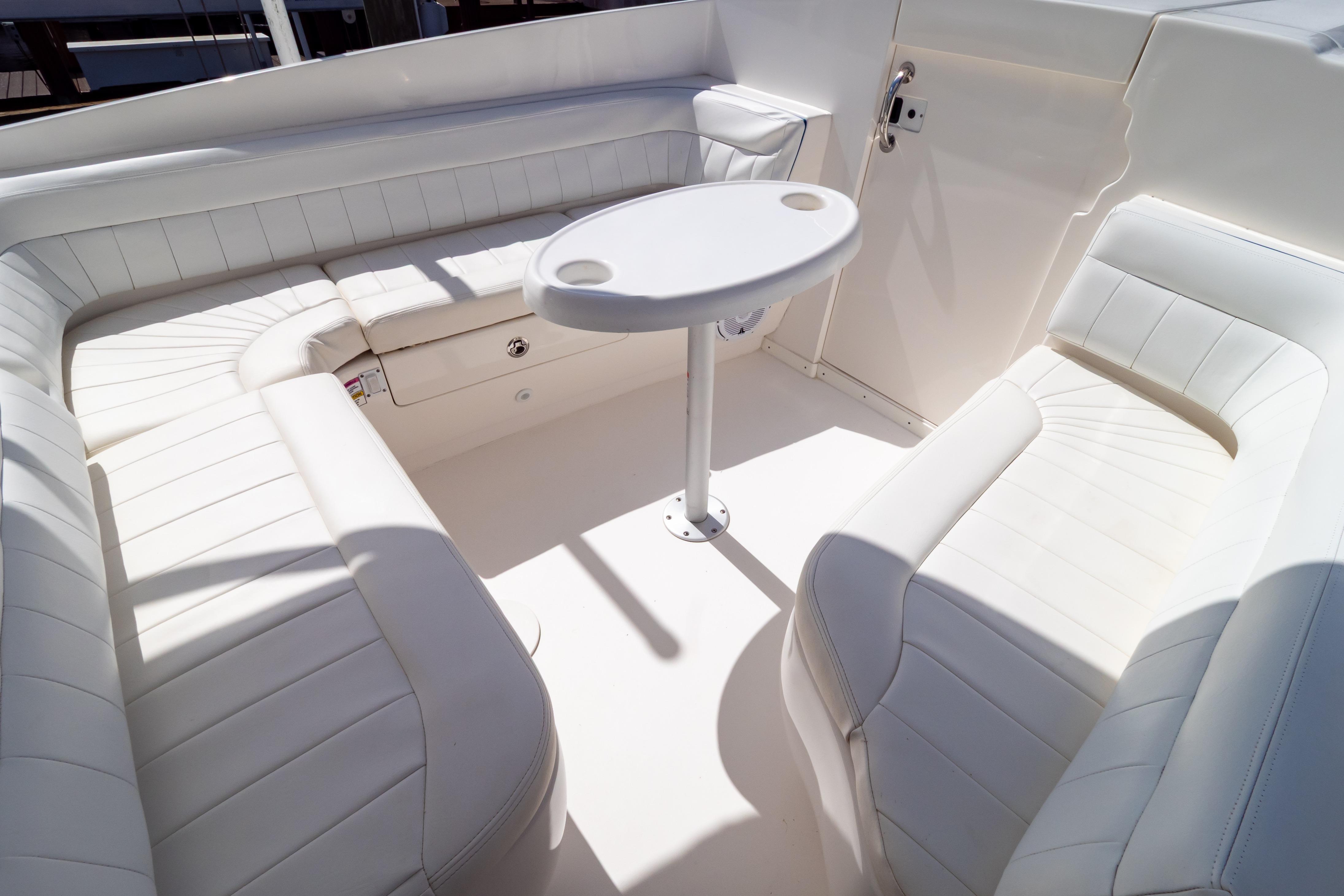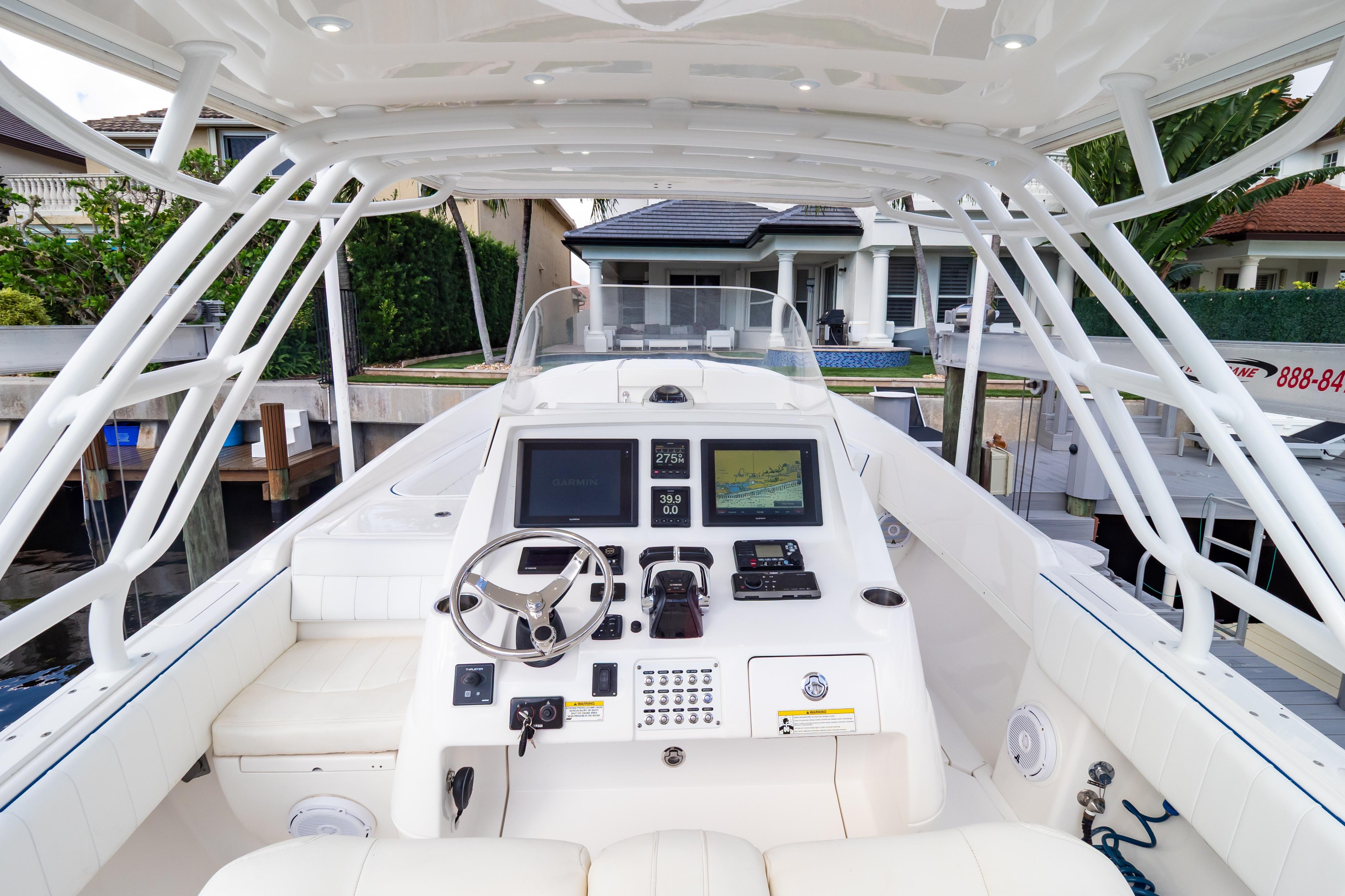 Topside, a luxurious new seating arrangement features a more comfortable angle to backrests and an aft-facing starboard side seat. The L-shaped forward seating wraps the forward bulkhead with a new backrest that allows passengers to lounge facing fore or aft – all within reach of a popular console cooler. Another Intrepid design change includes removing the head from the cabin and combining it with a roomy shower and sink, hidden within the center console. From there, our team will collaborate with you to custom style and rig everything from the aft cockpit to the electronics in the helm for fishing, diving, cruising or whatever activity you dream of when you dream of owning your own one-of-a-kind Intrepid.