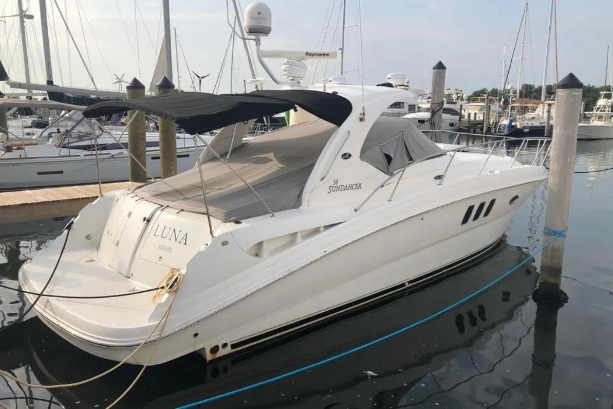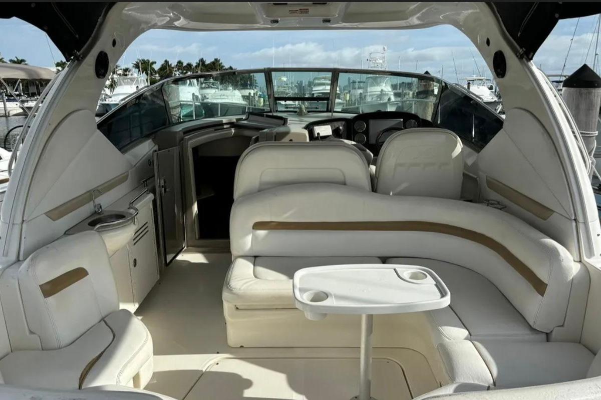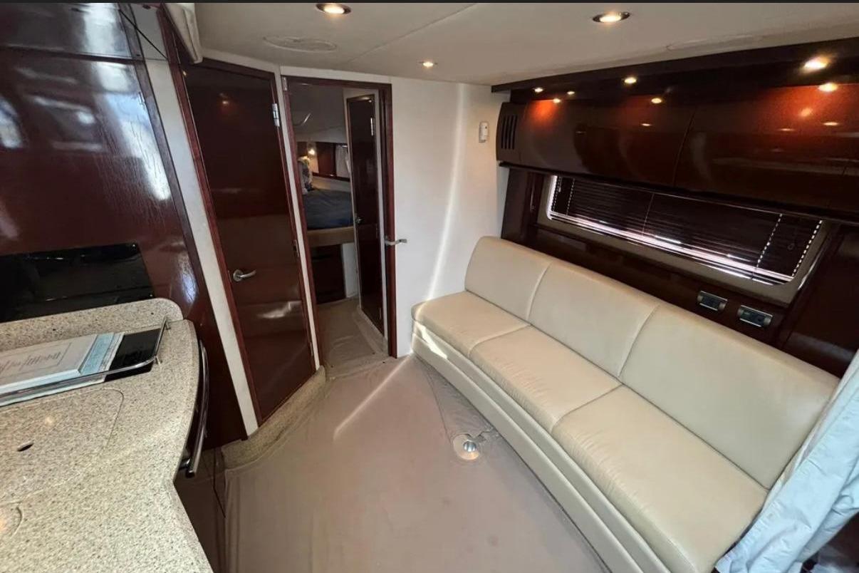 This 2008 Sea Ray 38 Sundancer offers the perfect balance of luxury, performance, and functionality. Featuring a spacious forward master stateroom, large salon/galley combo, and convertible aft lounge, the cabin comfortably accommodates overnight guests with premium leather seating, removable carpet covers, and a separate shower in the large vacuum-flush head. Climate-controlled by a single powerful A/C unit.