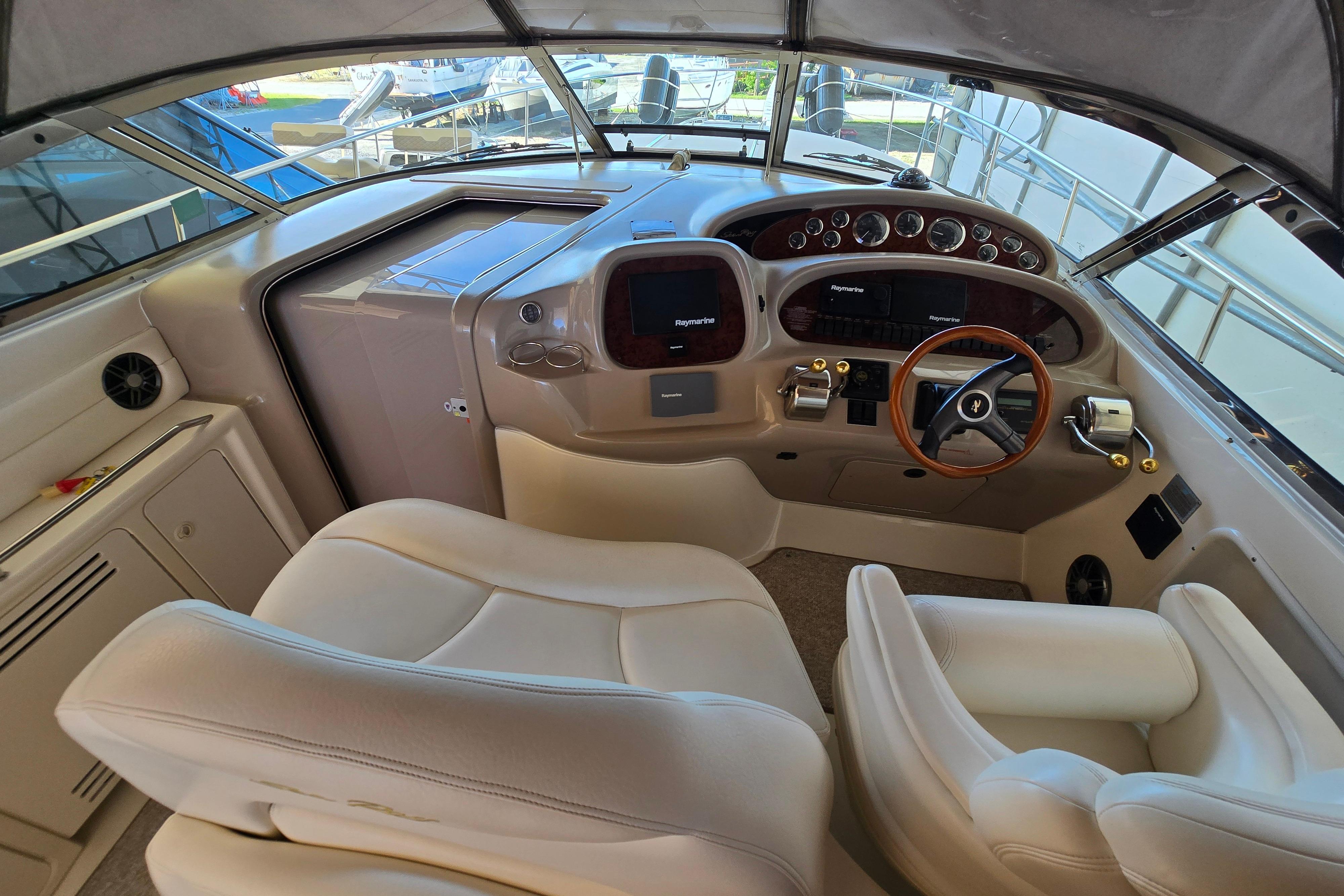 - 2000 Sea Ray 380 Sundancer used almost exclusively in freshwater! Persistence is powered by twin recently rebuilt Mercruiser Horizon MAG MPI 454’s! Preferred cherry interior! Meticulously maintained, this yacht has enjoyed a freshwater history and was only recently introduced to saltwater, offering exceptional preservation compared to typical saltwater vessels and shows as such. The boat and rebuilt engines have experienced less than 35 hours of use in saltwater. Detailed service records available. If you are looking for a 380 Sundancer it will be worth your time to schedule an appointment to board this boat! A few notable details are listed below. Please contact Stone Yacht Brokerage for more information.