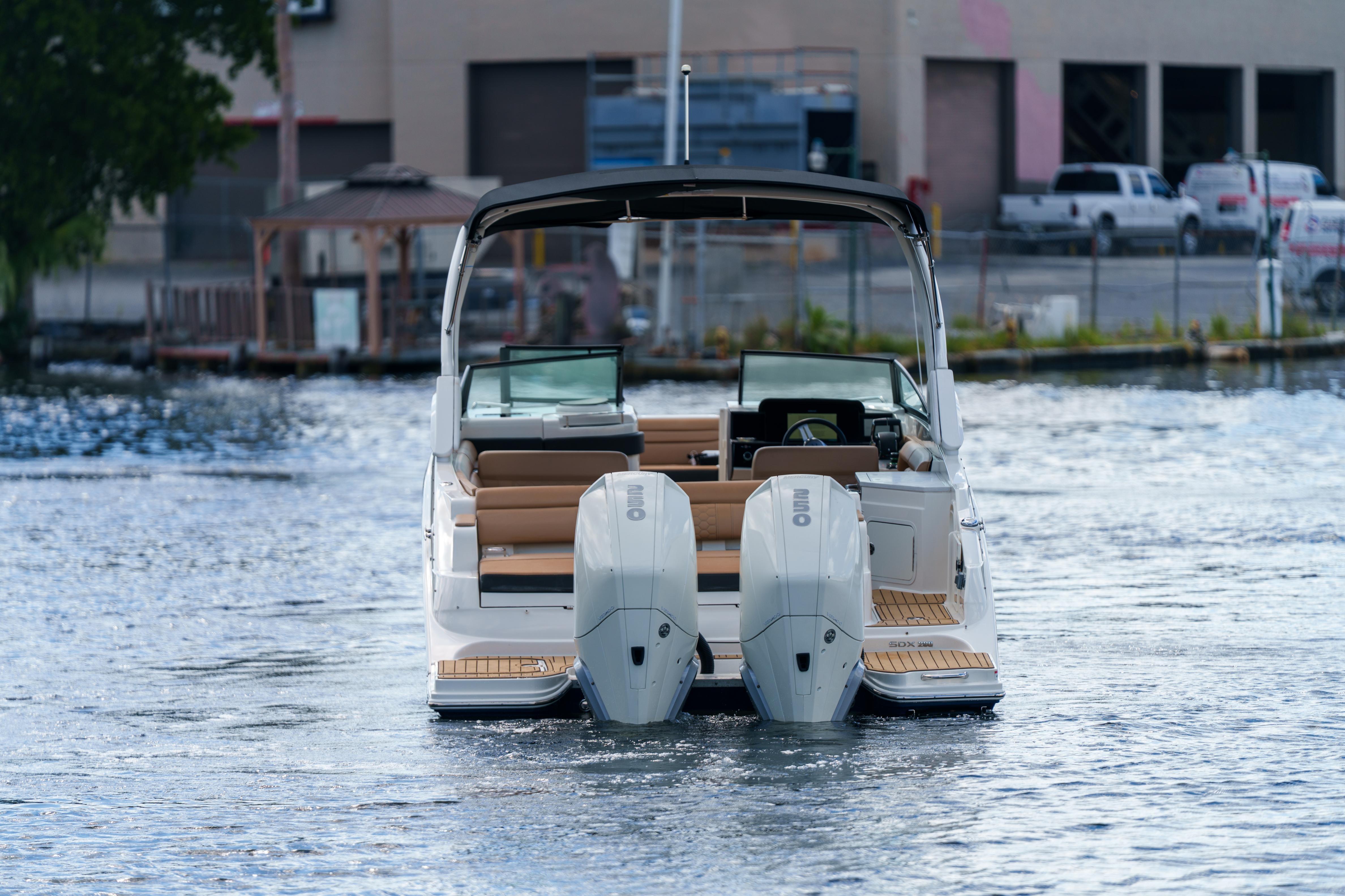 Introducing the stunning 2023 Sea Ray SDX 290, a remarkable bowrider that combines elegance with performance. Measuring an impressive 29.17 feet in overall length, this vessel is crafted from durable fiberglass, ensuring longevity and a smooth ride.