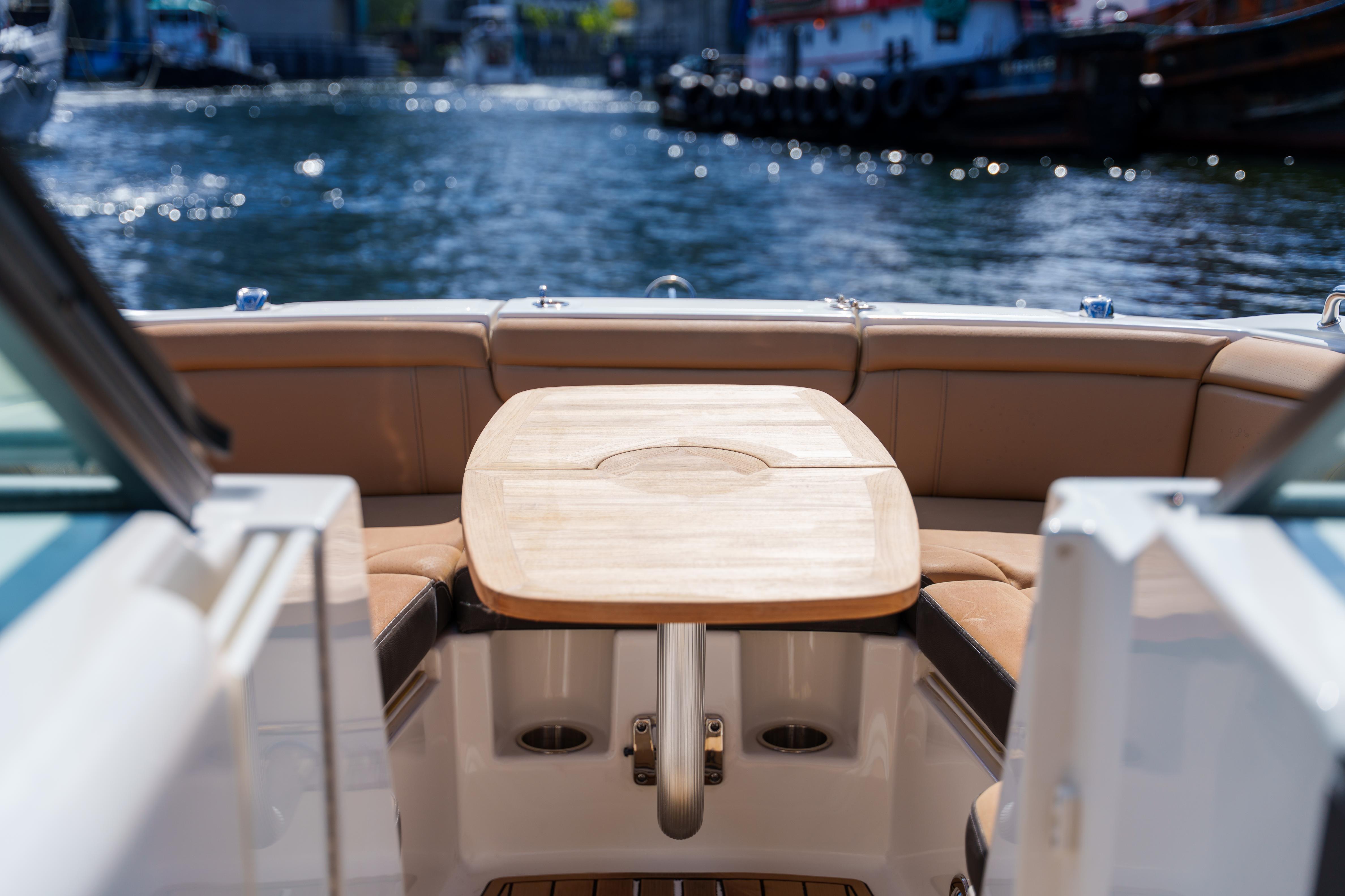 The SDX 290 promises exhilarating power and reliability on the water. The thoughtful design includes a well-appointed head, enhancing comfort for all aboard. This boat is perfect for both leisurely cruises and spirited adventures, providing ample space for relaxation and enjoyment. The Sea Ray SDX 290 is a fantastic choice for those seeking a blend of style, functionality, and modern features, making every outing a memorable experience.
