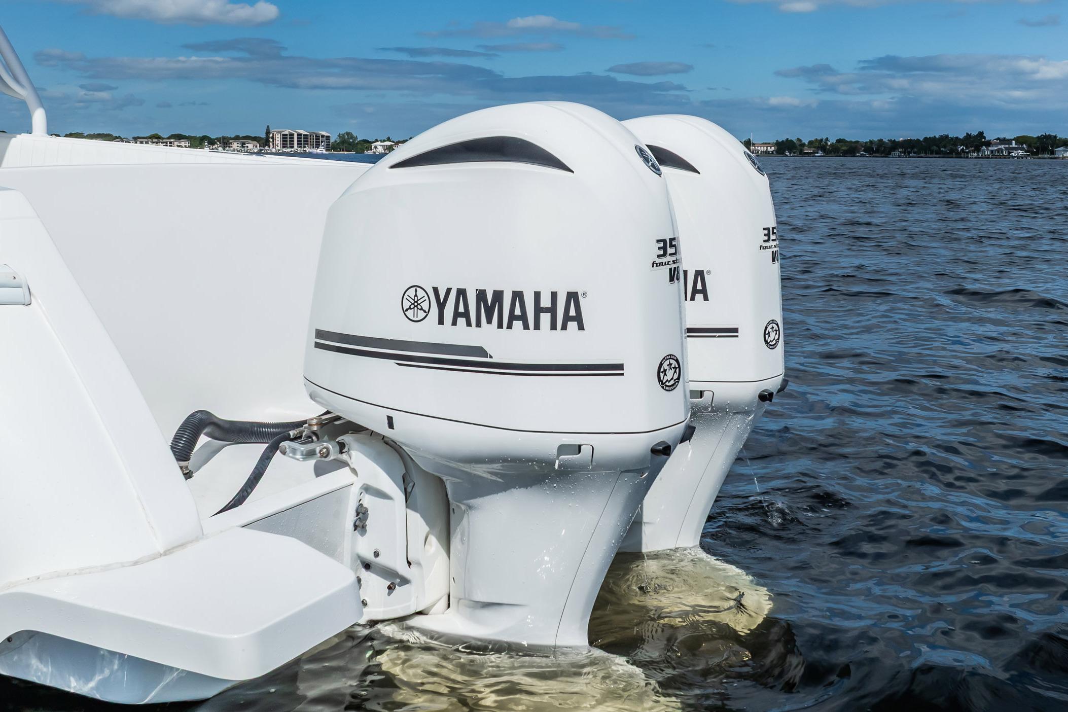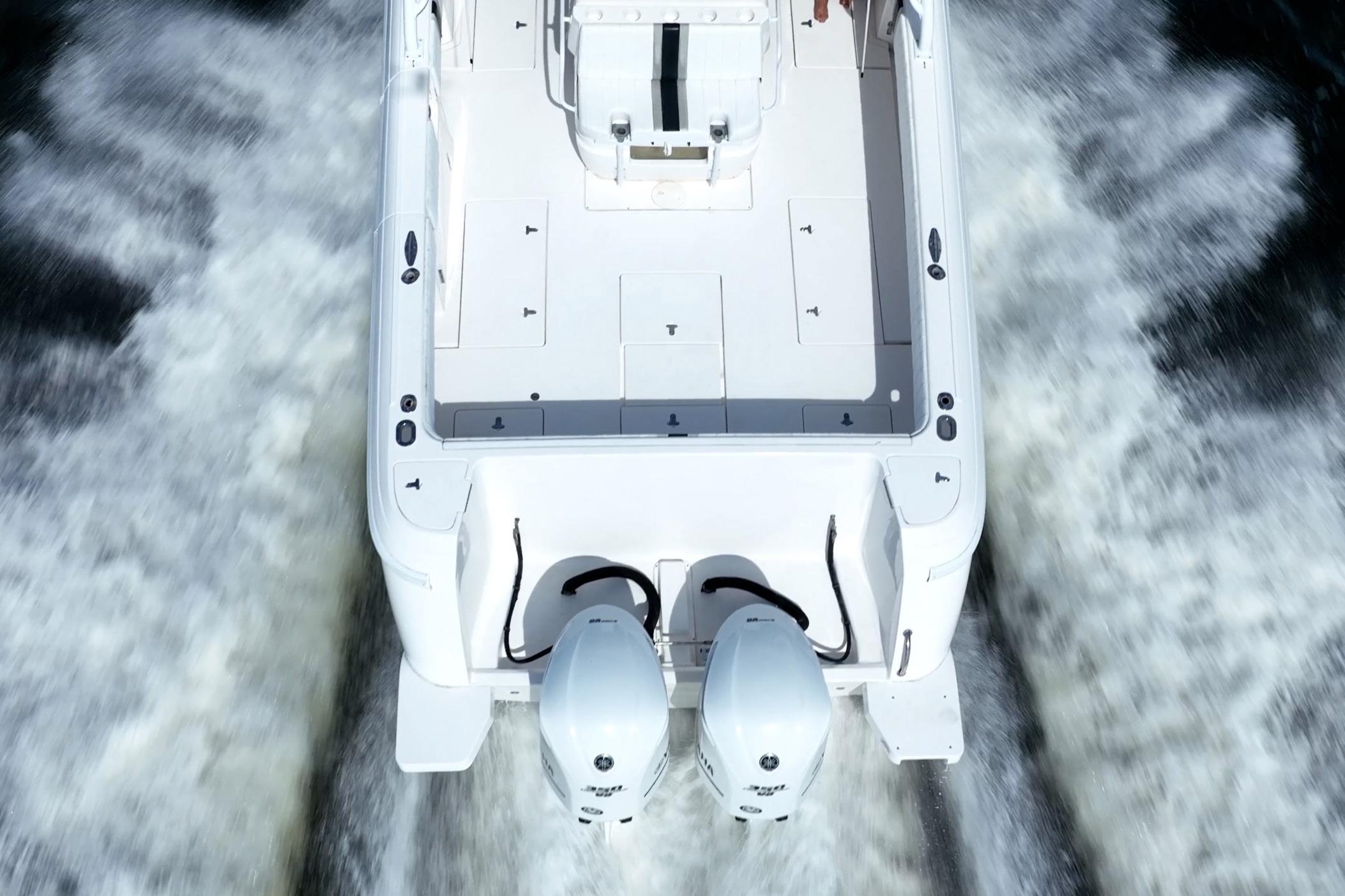 Powered by twin Yamaha 350s, this 400 Open delivers strong acceleration, efficient cruising, and top speeds of about 44kts.
