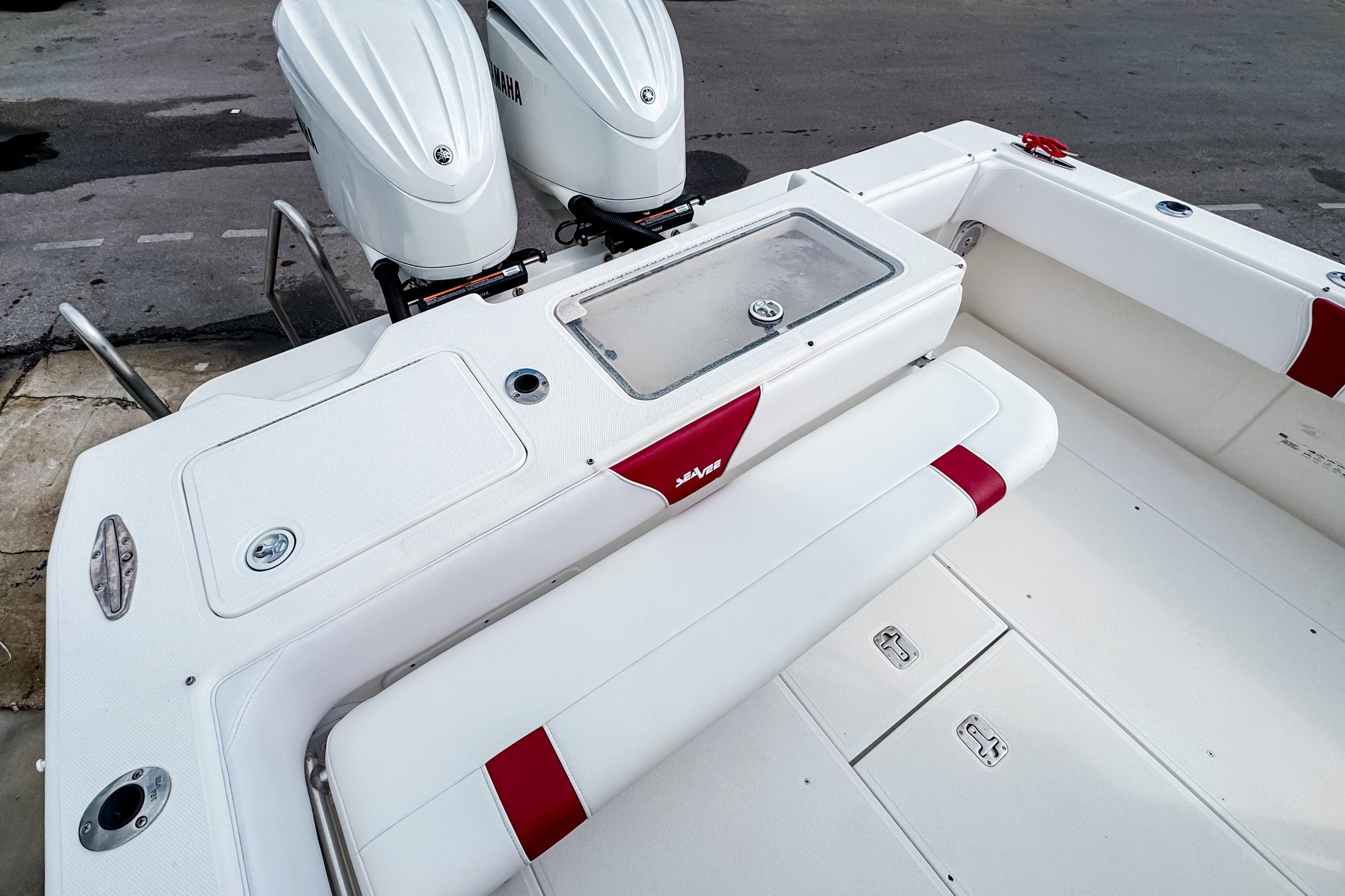 This SeaVee 34 Cuddy is a remarkable center console boat that combines performance and comfort. With an overall length of 34.75 feet, this vessel is designed for both leisure and adventure on the water. The hull is constructed from durable fiberglass, ensuring longevity and resilience against the elements.