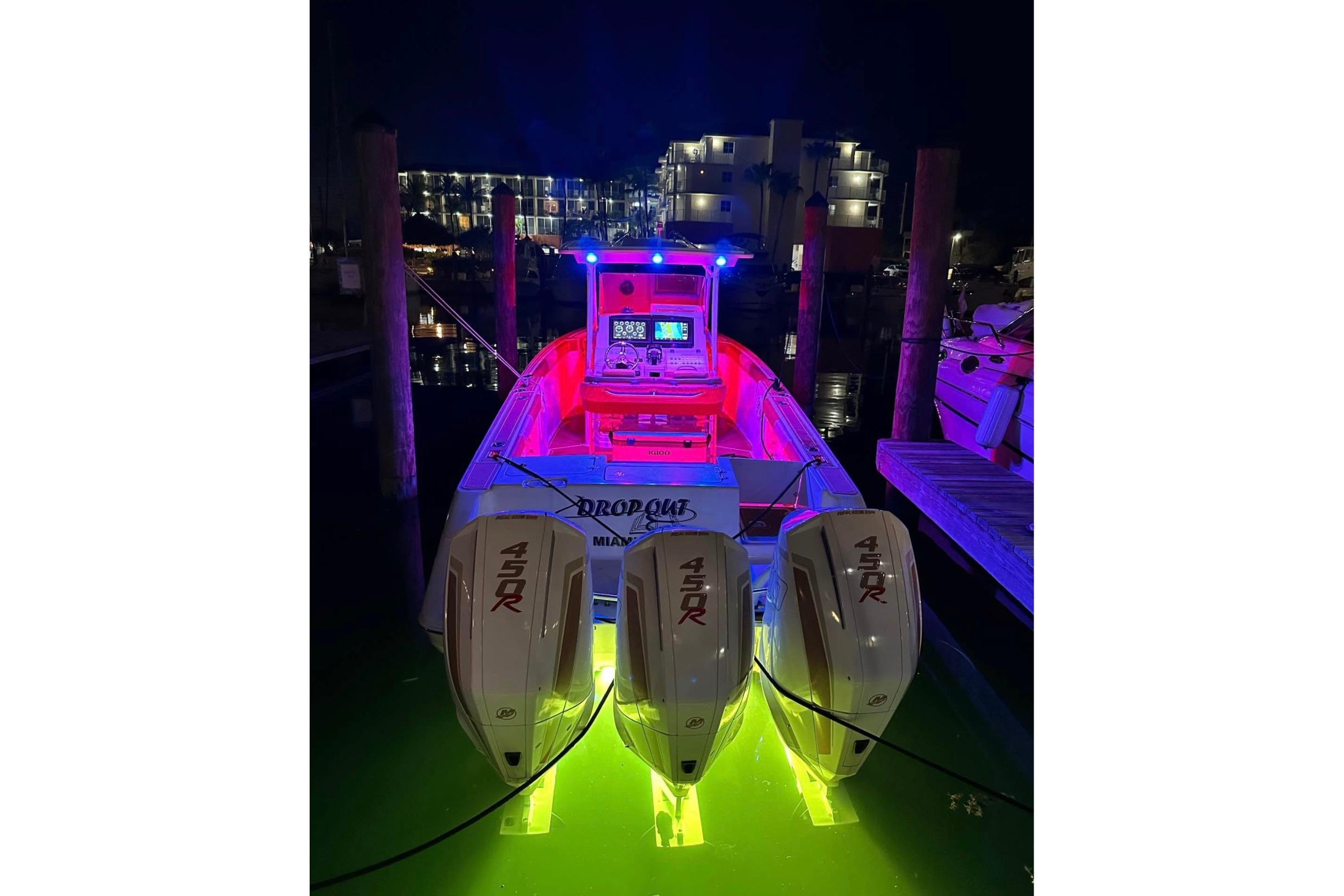 Donzi 32 VS with triple 450r engines (under warranty until 2027). Transom has been fully reinforced and new hydraulic jack plates have been added (2024). New rigging, new batteries, new pumps, new switches, and new em/speakers. She also comes with a 2023 trailer for easy launching and transport.