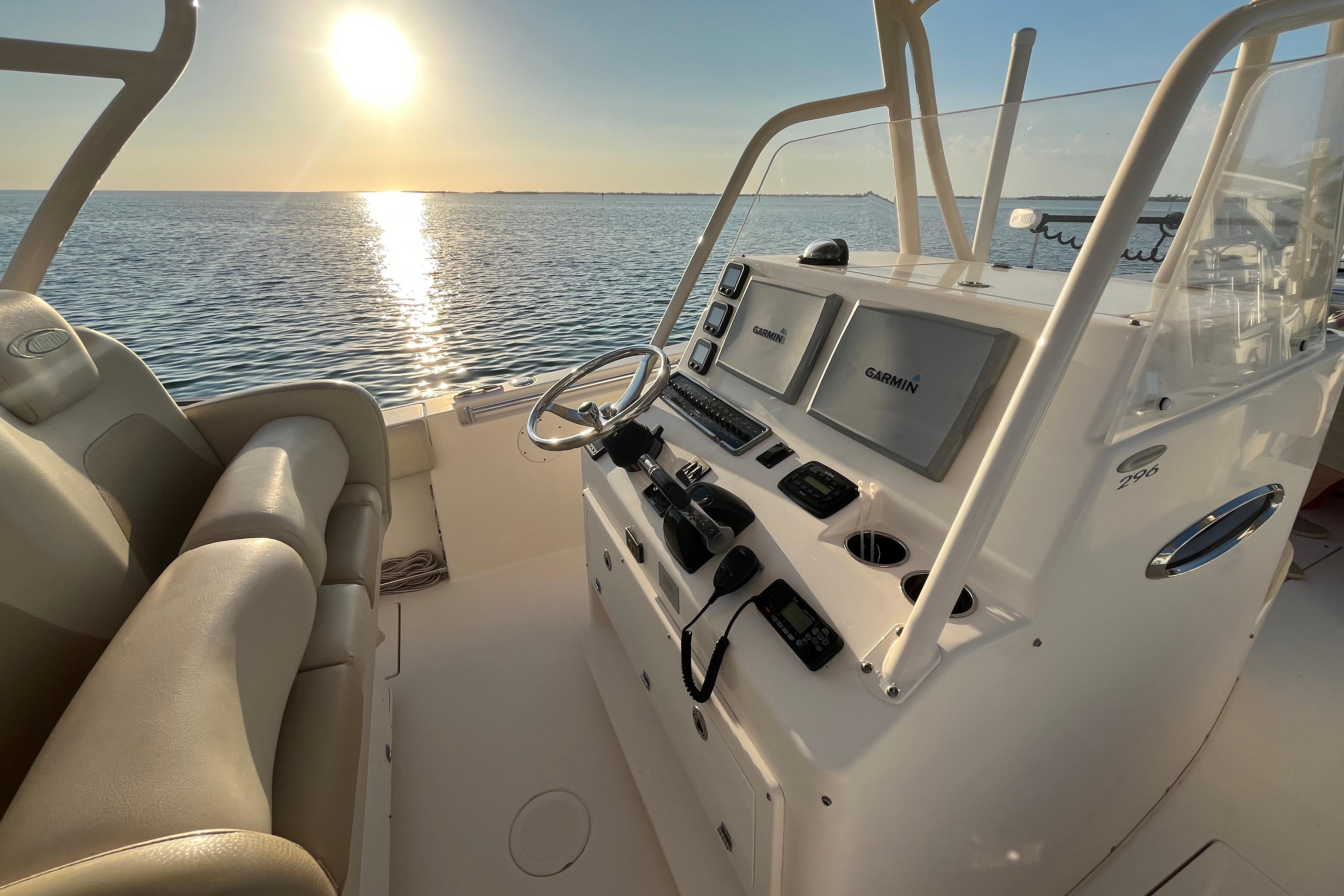 The Cobia 296 CC is designed big to handle any conditions Mother Nature throws its way. It also fishes big with twin 28 gallon livewells and a cavernous cockpit with flip down aft seating and two in-deck 64″ macerated fishboxes. All the lures, leaders and terminal gear you own will fit neatly into the tackle organizers in the leaning post and console and your dead baits will be kept fresh and ready for rigging in the two insulated boxes in the tackle station.