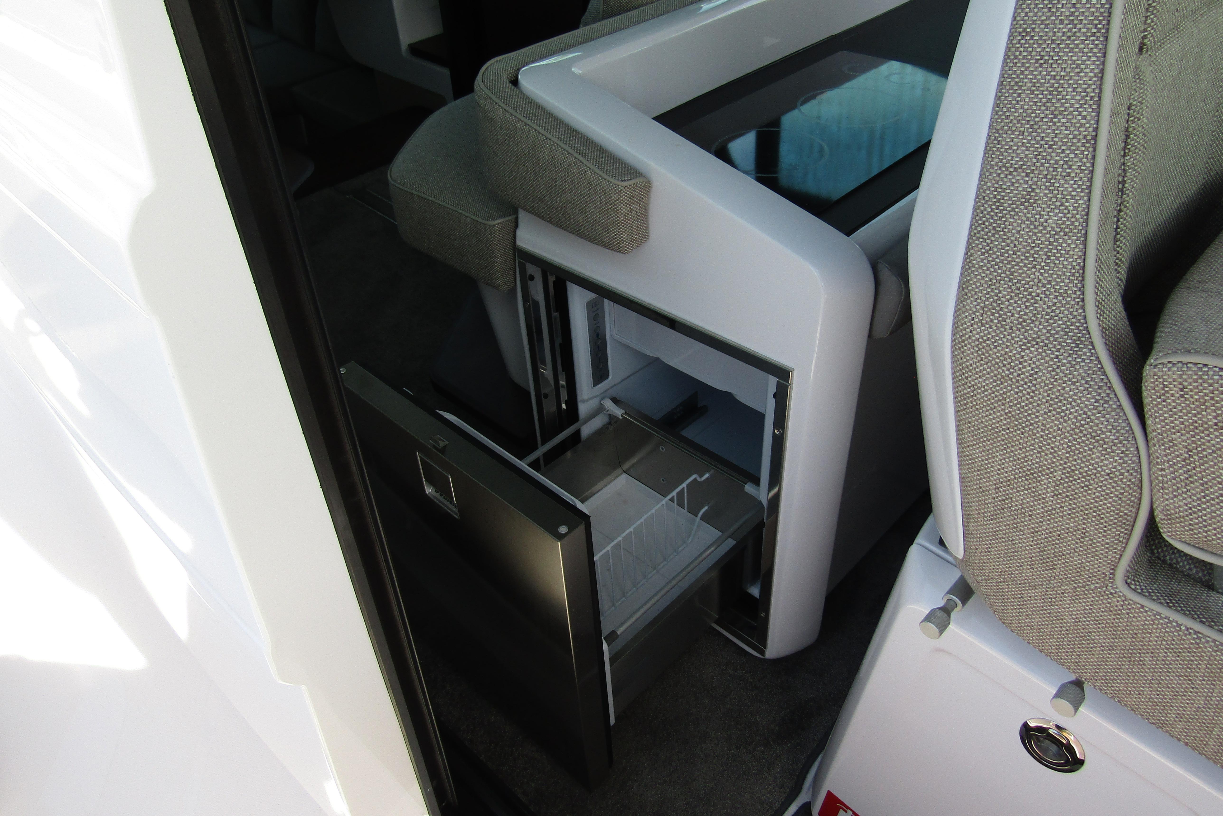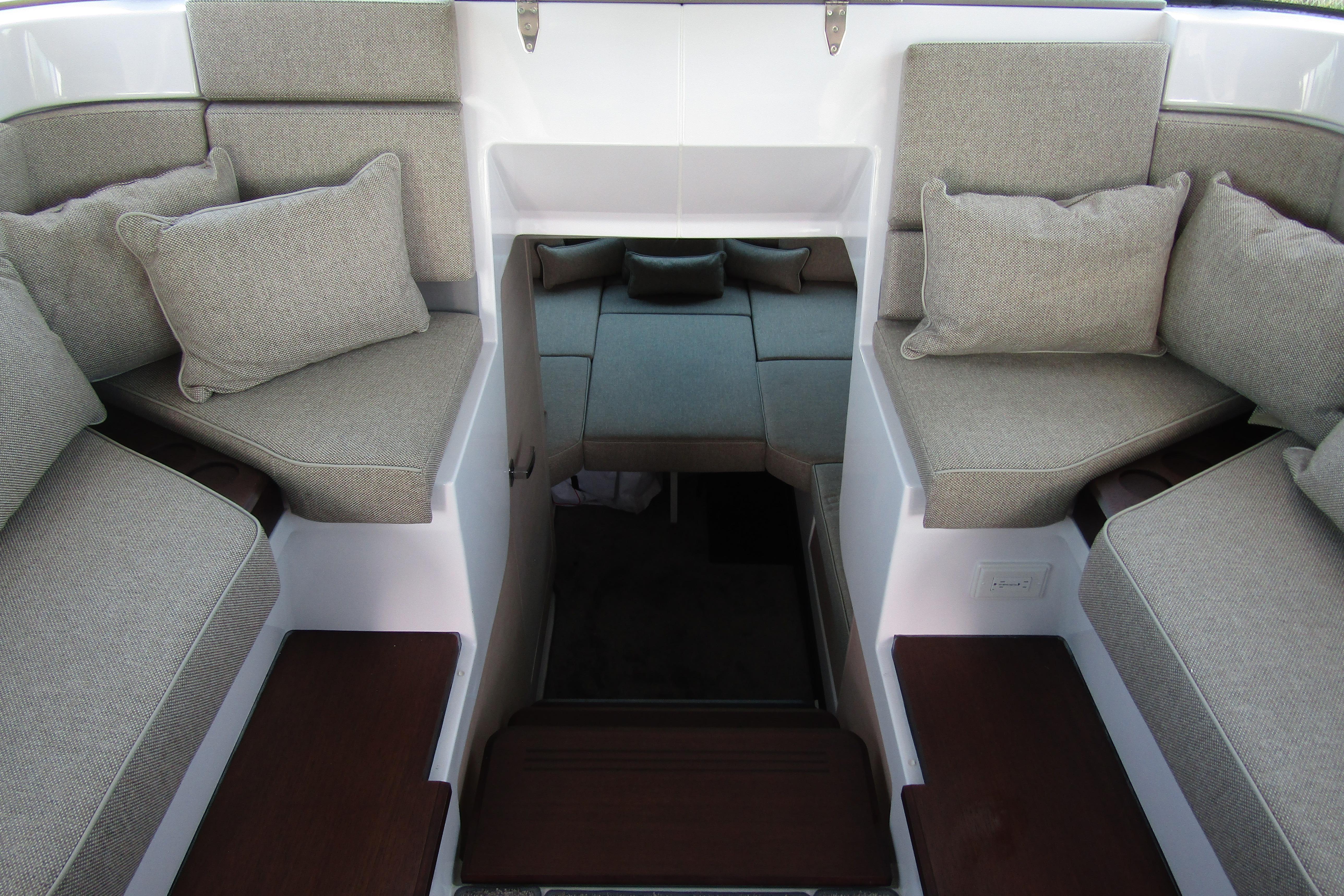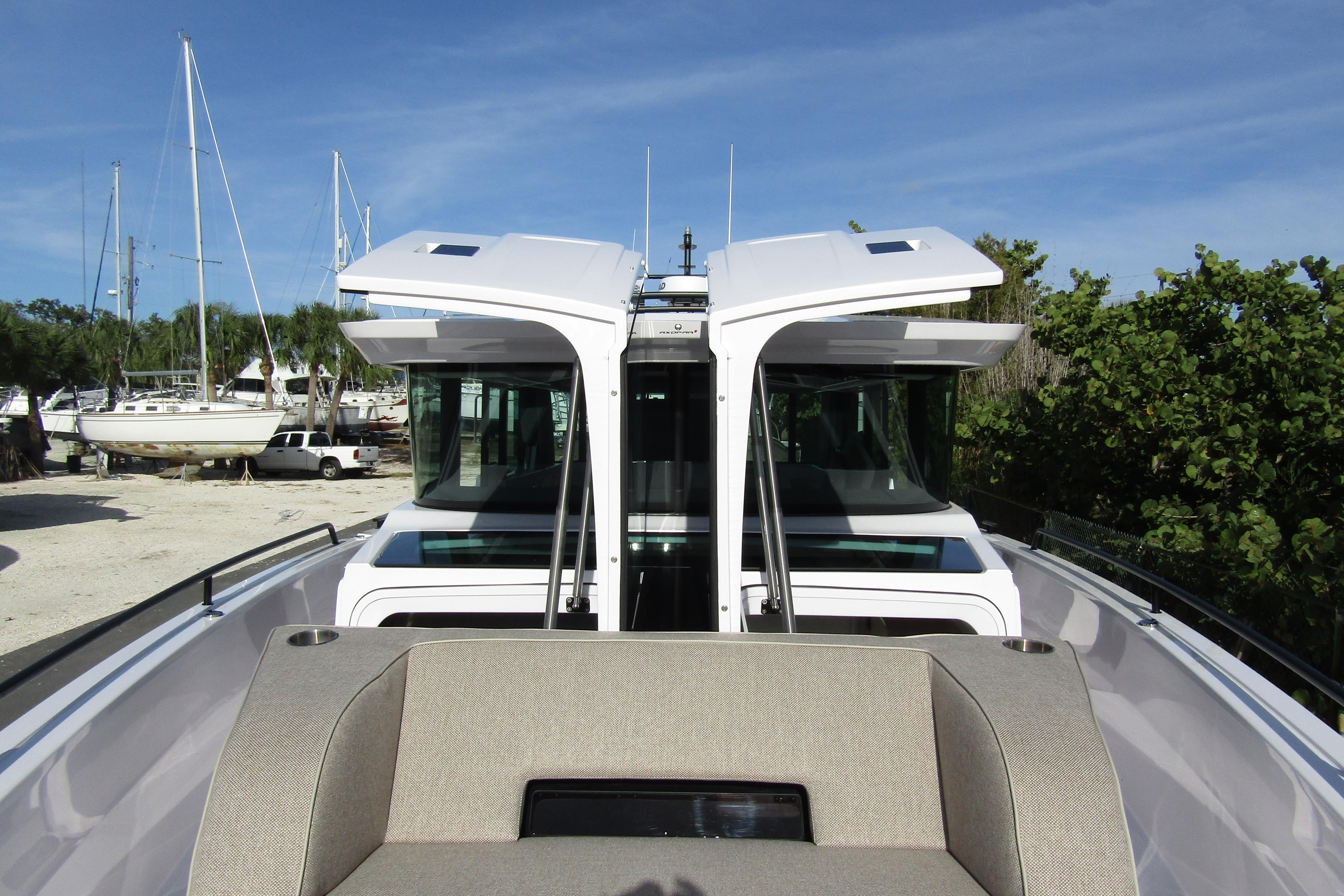 Our commitment to disruptive products is evident in the Axopar 45 XC Cross Cabin, a groundbreaking creation. This model stands out as the world's first outboard-powered, fully enclosable walk-around cabin boat in its size category, offering unparalleled all-weather cruising capabilities. With a simple touch, users can seamlessly transition from an enclosed cabin boat to an open boat experience. In an instant, the large dual sliding doors and dual electric roofs can be closed, providing complete protection from the elements.
