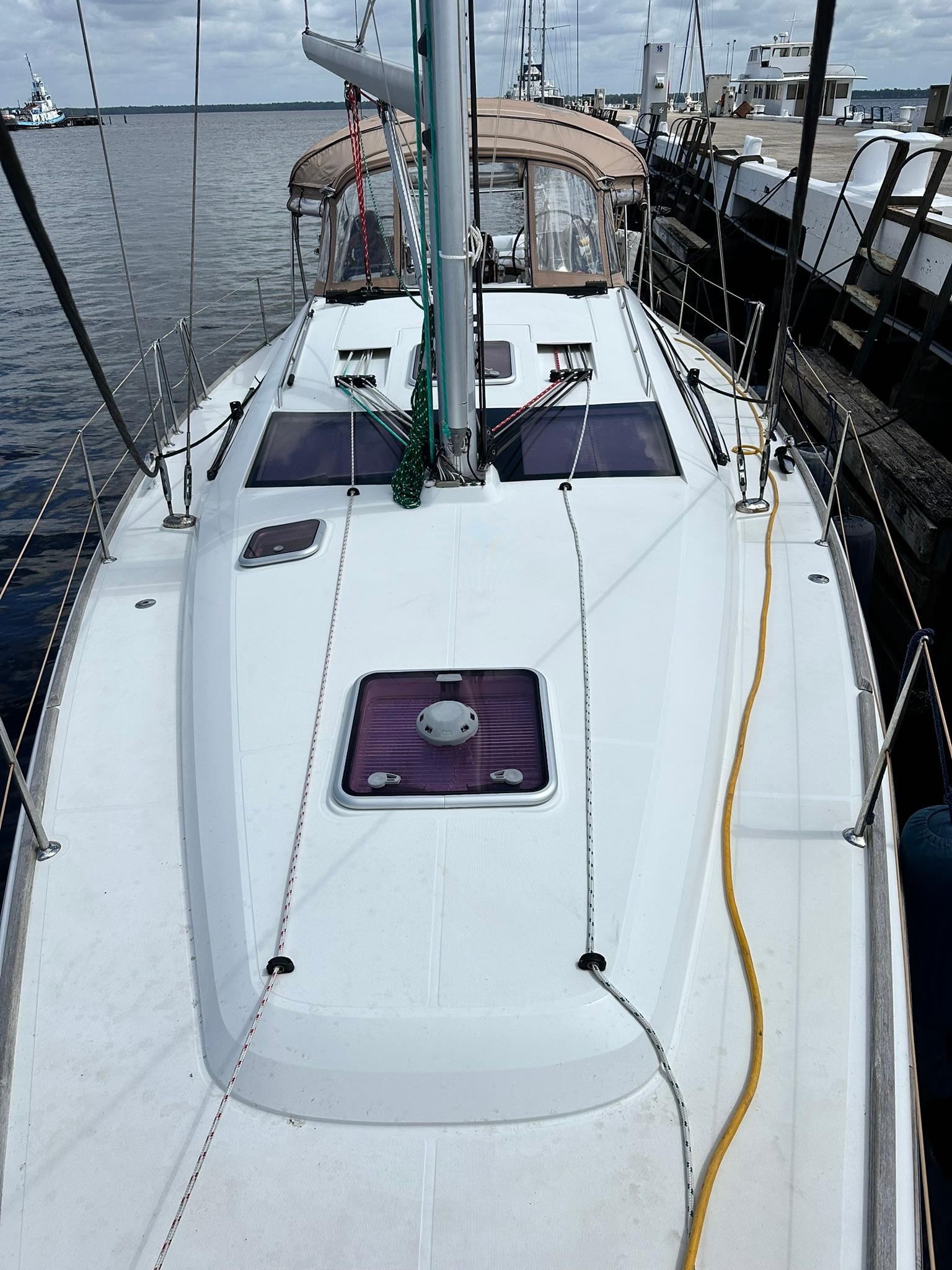The powerful hull lines of the Sun Odyssey 45 DS were perfected by Naval Architect Philippe Briand to ensure exceptional stability and comfort at sea.