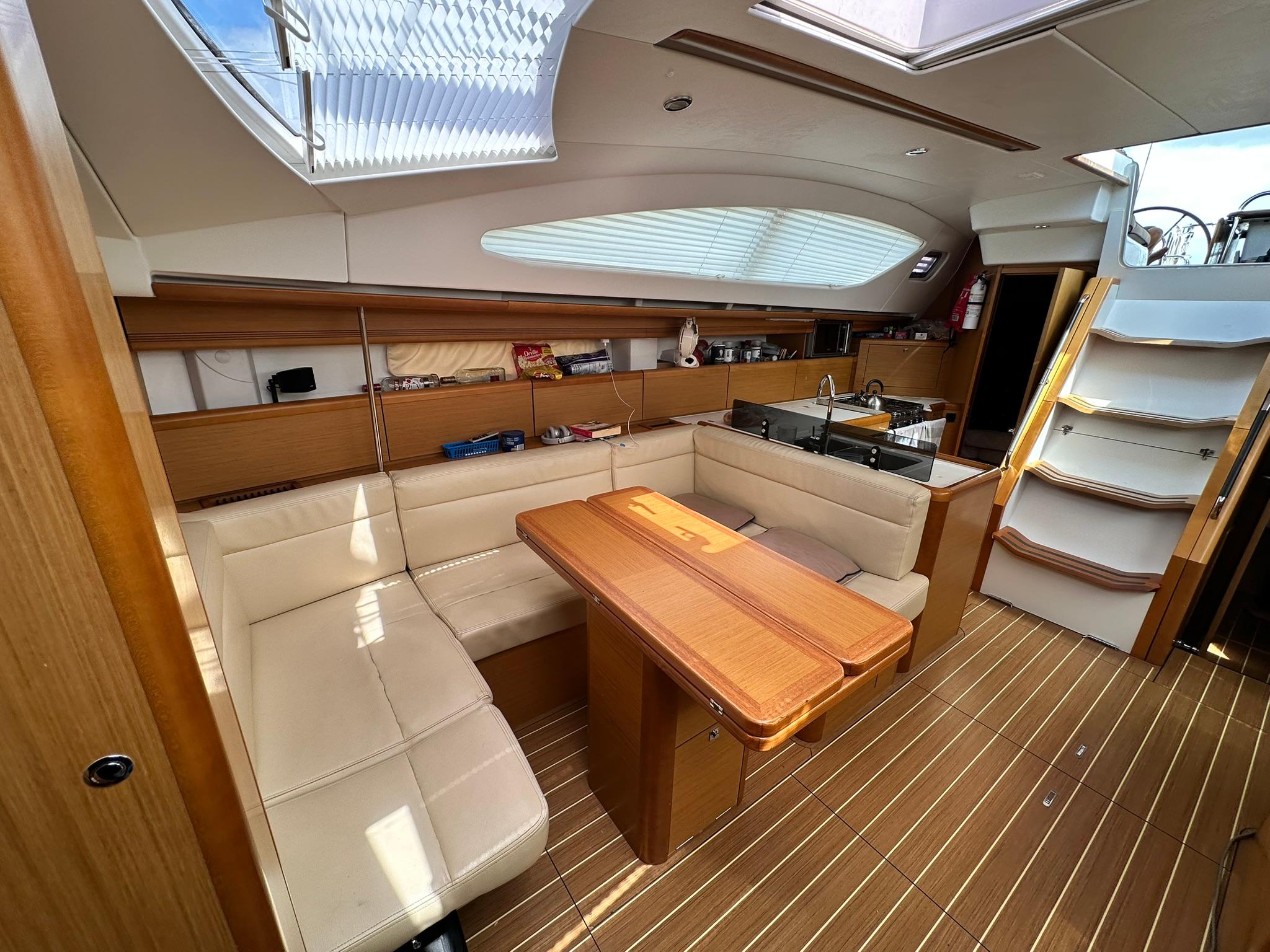 On the interior, the Sun Odyssey 45 DS delivers a new concept of space. With a raised deckhouse designed by Garroni Designers and attractive wrap-around windows built into the deck plan, as well as curved lines and oversized portholes in the hull, living spaces are flooded with natural light.